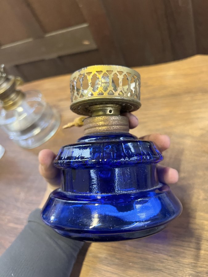 Đèn dầu bầu thuỷ tinh màu xanh tuyệt đẹp,tất cả lành tít