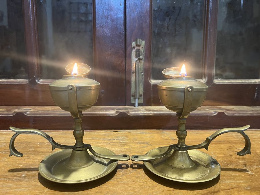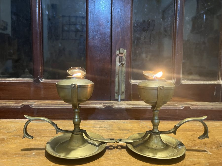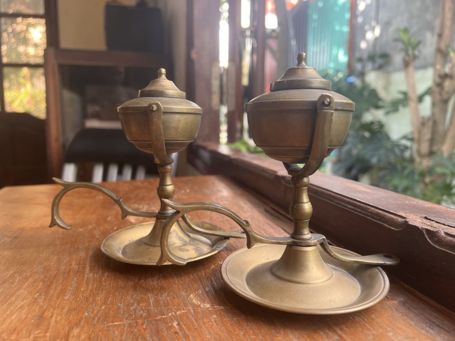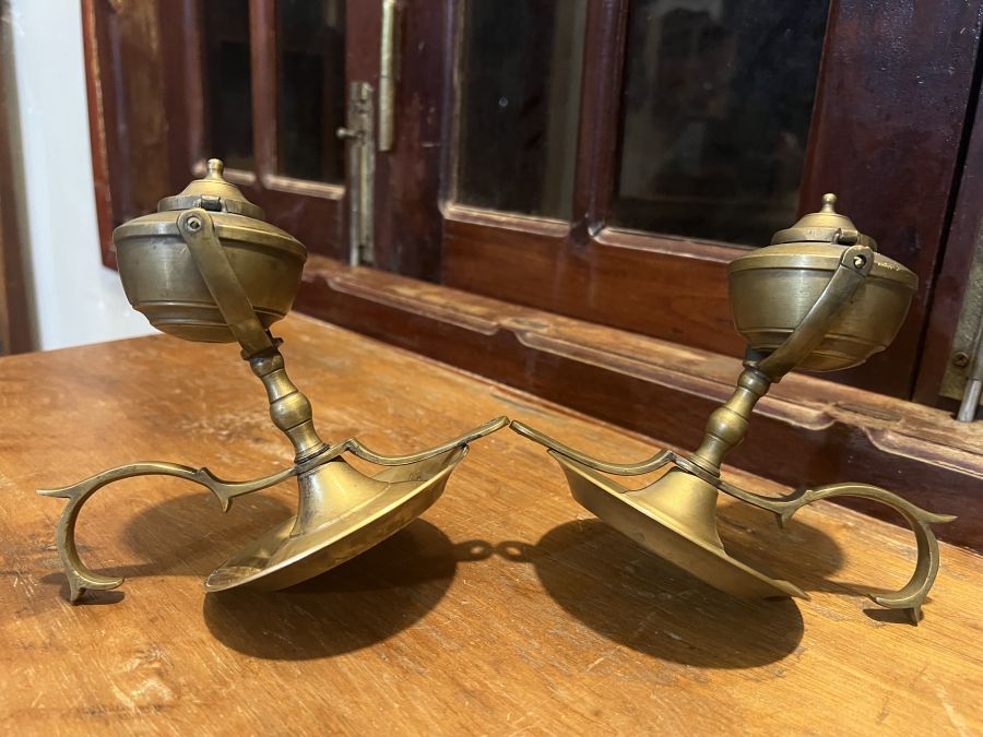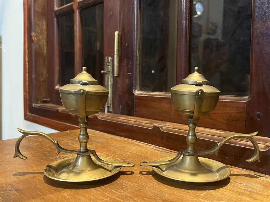 Em giao lưu đôi đèn dầu Pháp cổ , mẫu hiếm gặp