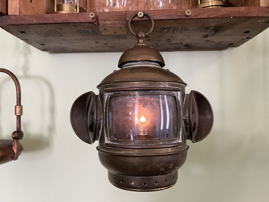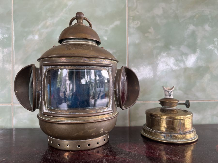 Em giao lưu đèn dầu cổ , loại đèn Lantern - đèn treo thường được sử dụng trên tầu biển - tầu hải quân.