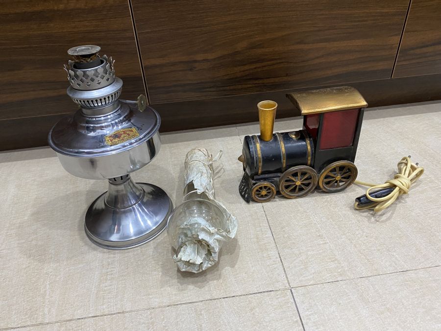 - Đèn dầu Kim Khí Thăng Long xưa, đèn mới tinh chưa sử dụng, lớp mạ còn sáng loáng, bóng đèn thuỷ tinh chuẩn có lô gô "Thuỷ tinh Hà Nội", bóng mỏng, trong veo