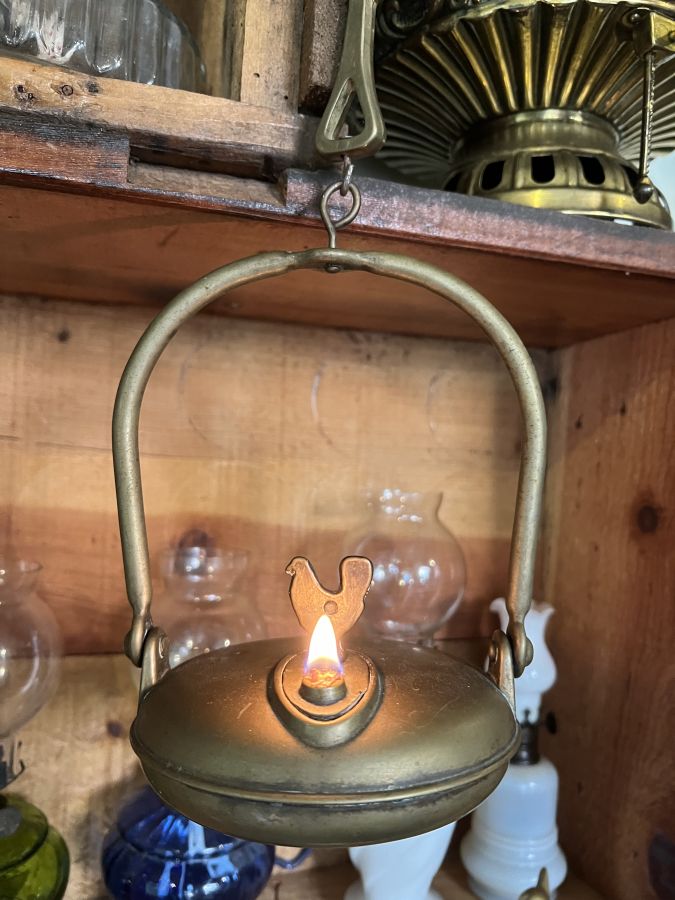 Em giao lưu đèn dầu Lạc treo với biểu tượng Gà trống may mắn của Pháp