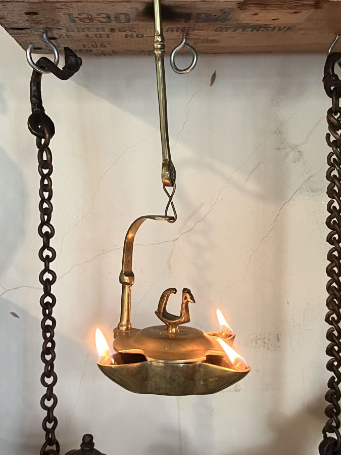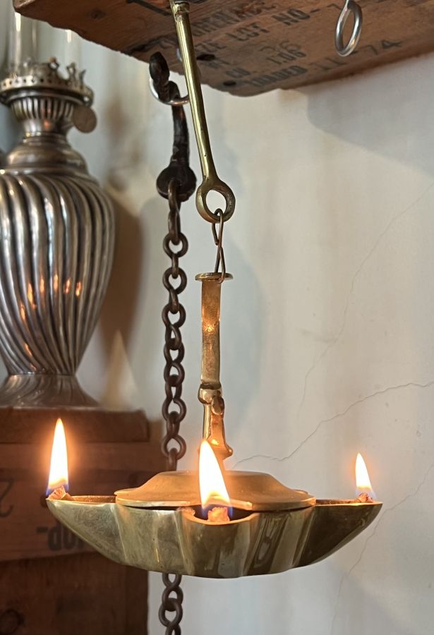 Đèn dầu Lạc cổ = Đồng đúc độc lạ với 3 điểm đốt sáng đẹp mắt.