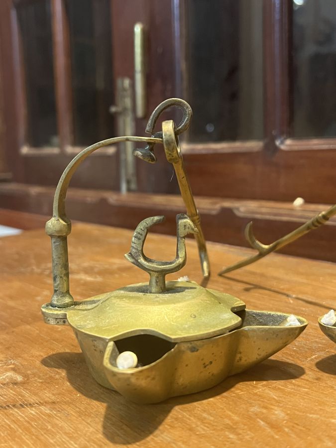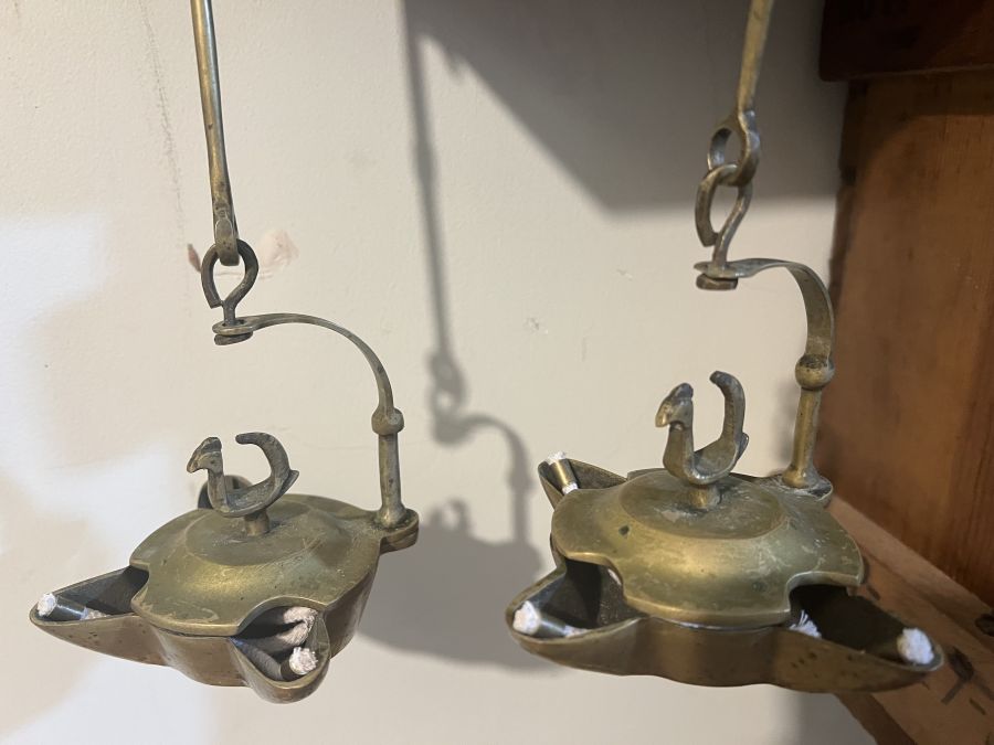 Em giao lưu đôi đèn dầu Lạc cổ = Đồng đúc - chất đồng dày nặng chắc chắn.
