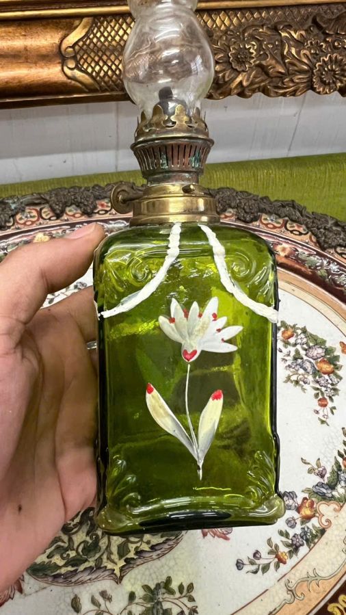 Đèn dầu pha lê xanh nhập Châu âu xưa