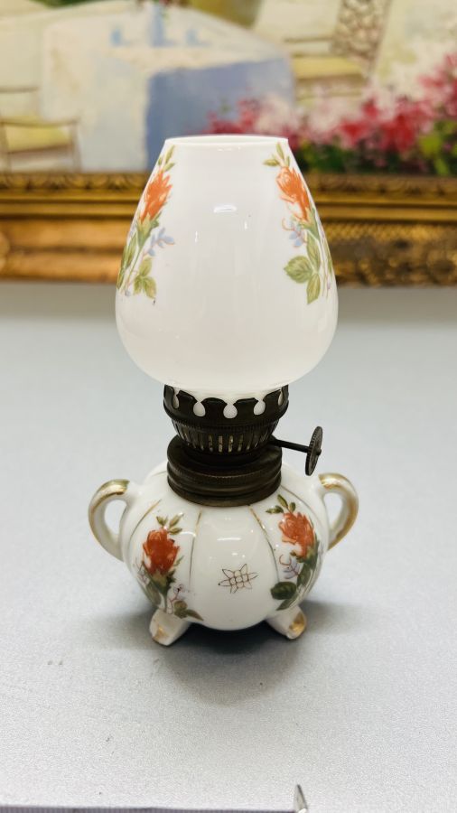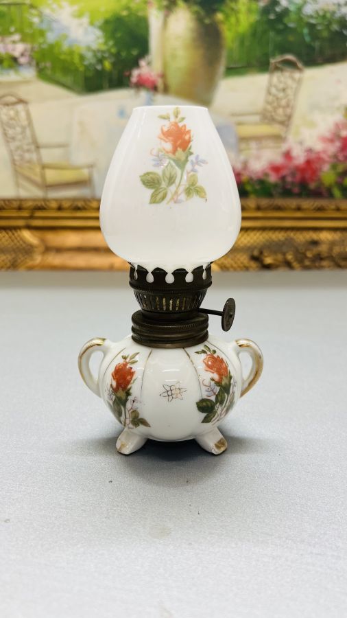 Đèn dầu mini Pháp lam Opaline bầu sứ vẽ hoa rất đẹp sử dụng tốt