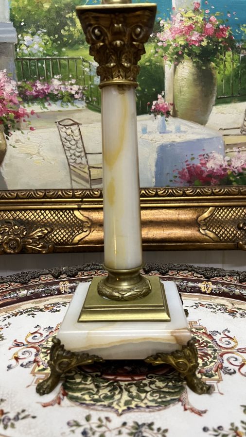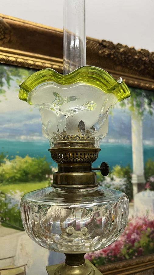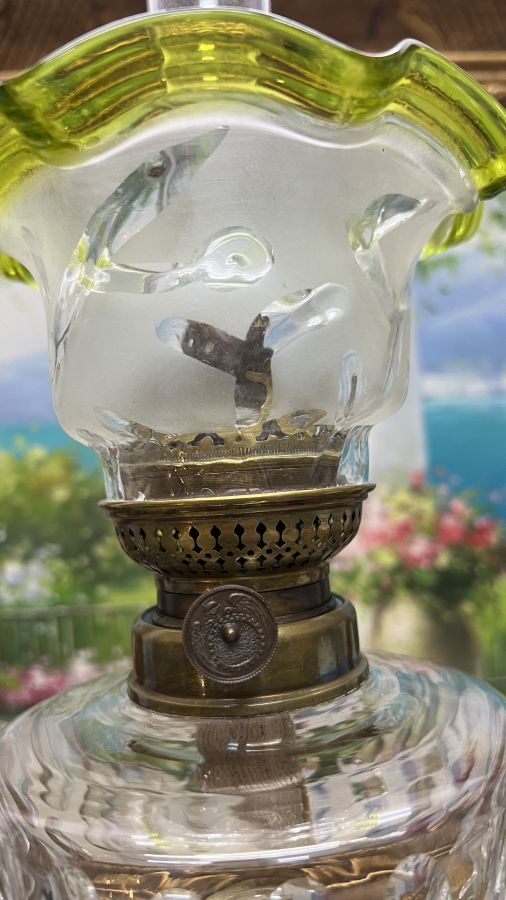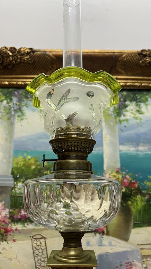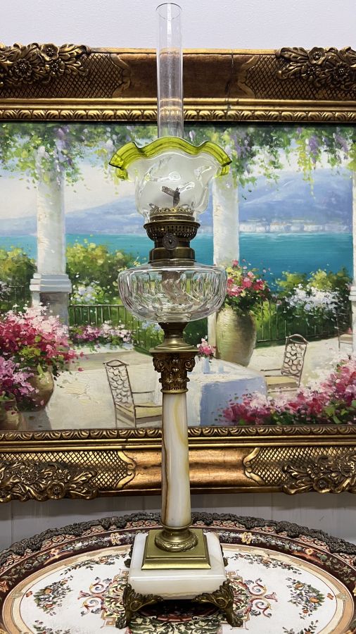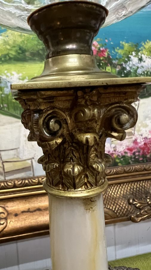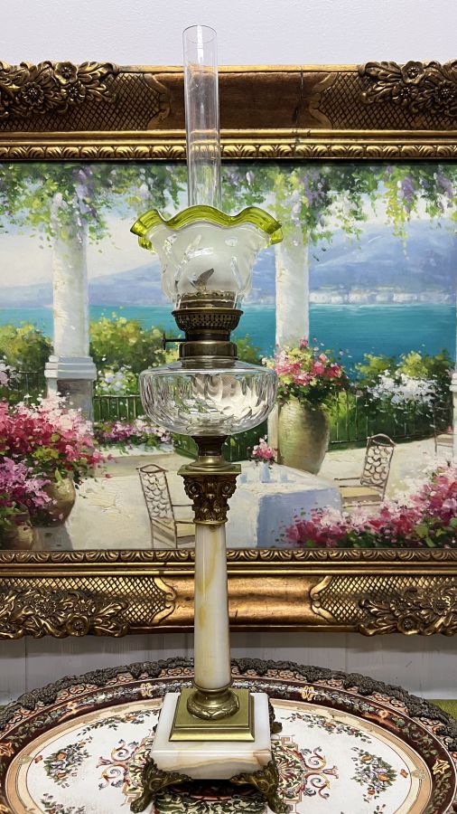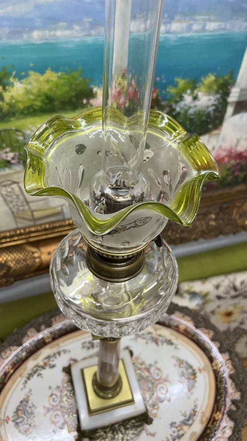 Đèn dầu Pháp cổ bầu lam pha Lê chân móng đá cẩm thạch đã lên nước tuyệt đẹp Zin nguyên bản