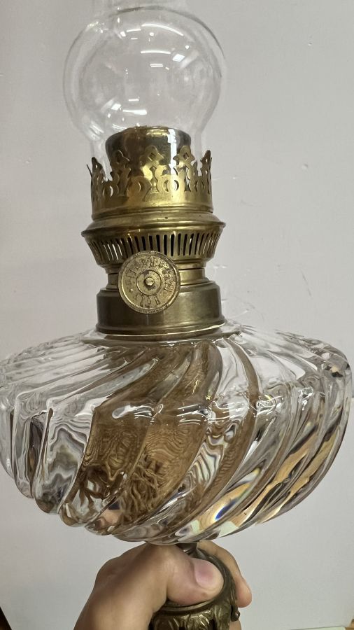 Đèn dầu Pháp cổ bầu pha Lê xoắn cực dầy (1.350kg) trước giờ mới thấy chân đồng đúc và sứ cẩn đồng tuyệt đẹp rất đáng được sưu tầm