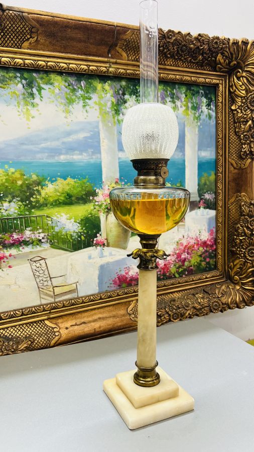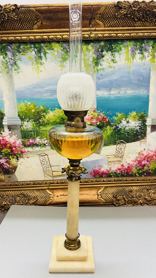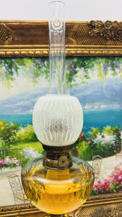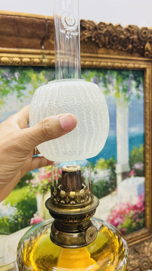 Đèn dầu Pháp chuẩn Cổ bầu pha Lê mài chân đá già đã lên vân Zin nguyên bản sử dụng tốt