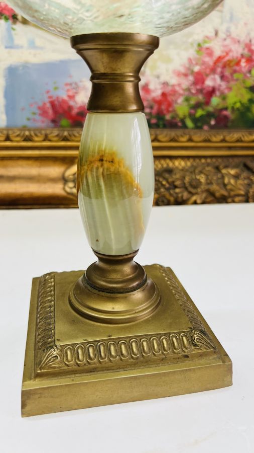 Đèn dầu Pháp cổ chân đồng đá Zin nguyên cây sử dụng tốt