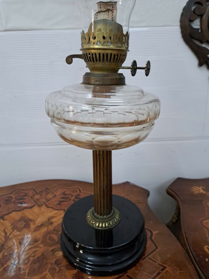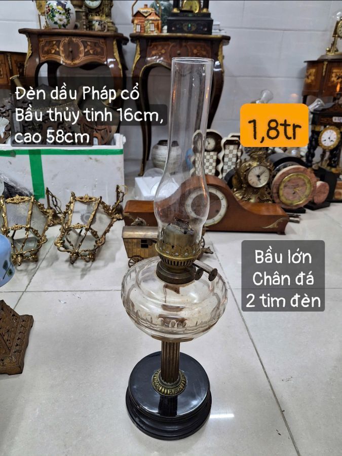 Đèn dầu Pháp cổ bầu thủy tinh 2 bấc đèn