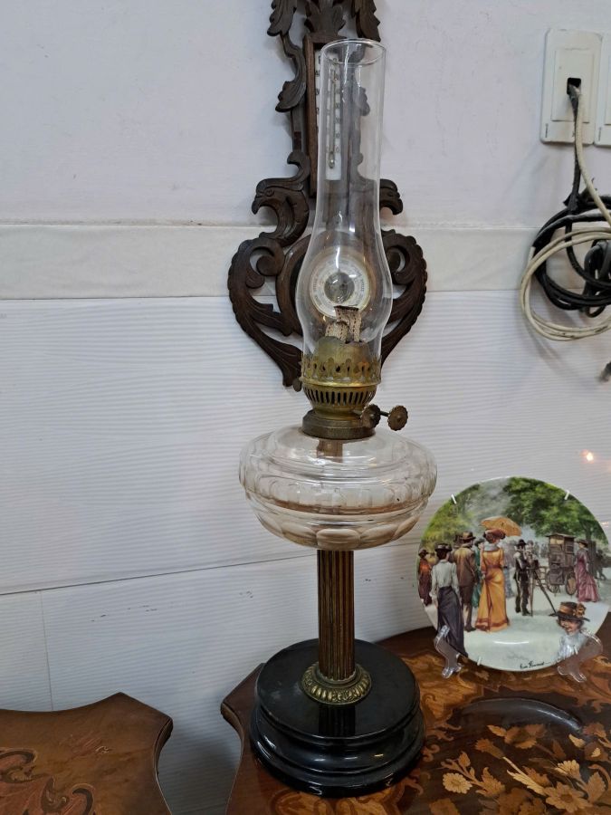 Đèn dầu Pháp cổ bầu thủy tinh 2 bấc đèn