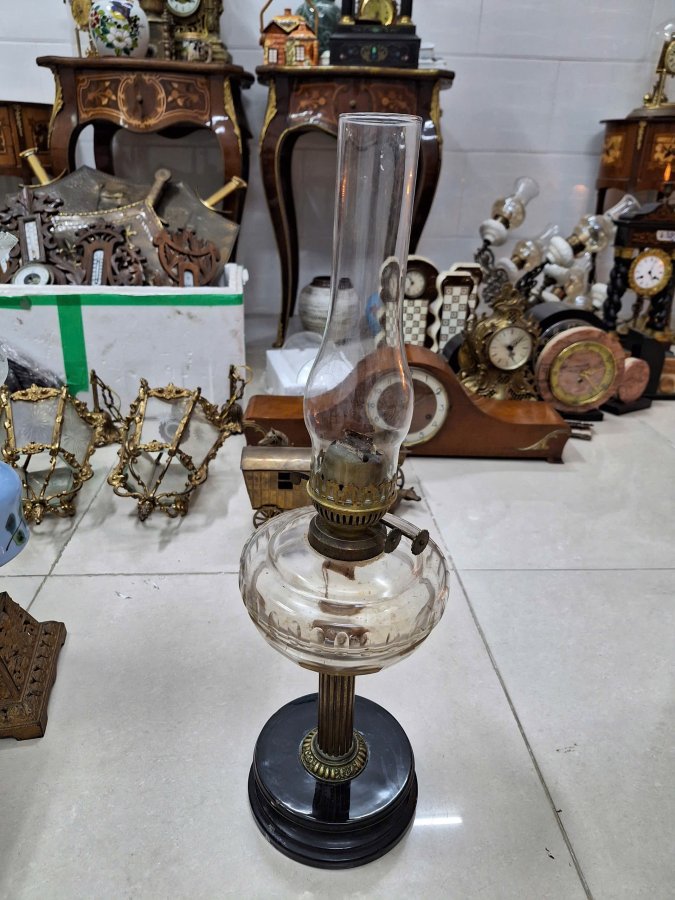 Đèn dầu Pháp cổ bầu thủy tinh 2 bấc đèn