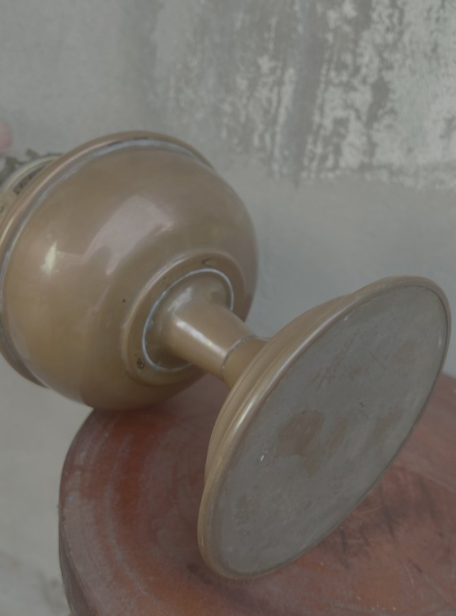 Dáng đèn khá đẹp bầu bự eo thon. Họng đèn bằng đồng thau, bình dân ko tên tuổi.