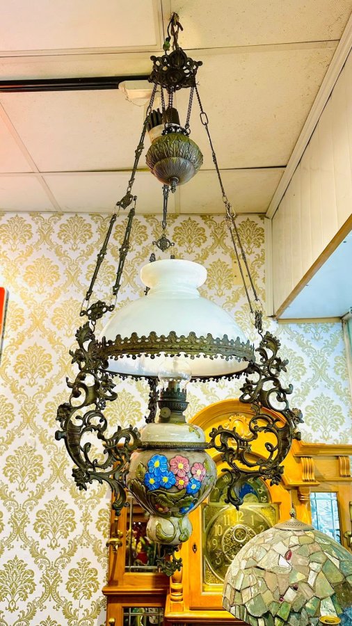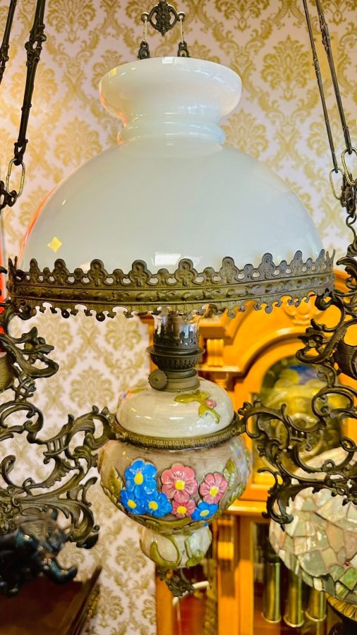 Đèn dầu treo 3 dây Pháp xưa 🐦🔥🐦🔥🐦🔥 Kích thước : dài 1m2 ( có thể tùy chỉnh thêm dây xích cao hoặc thấp hơn tùy ý ), chao sứ đk 30cm Toàn bộ khung đồng.Zin nguyên bản,lành tuyệt đối Lh 0918560809☎️