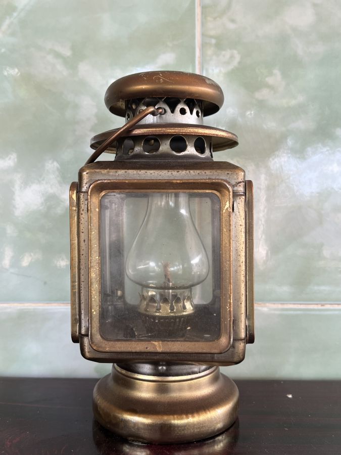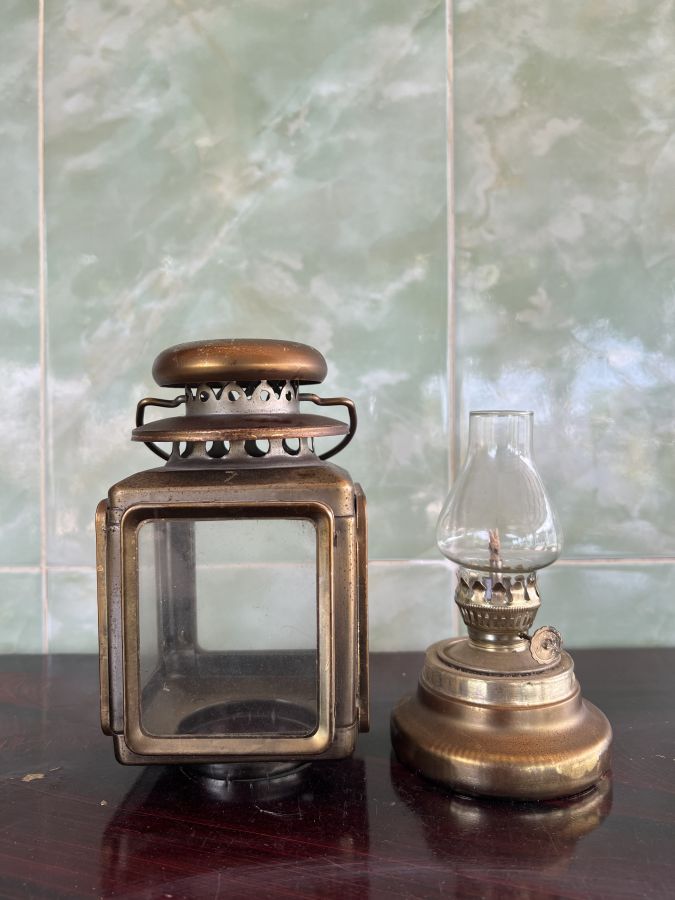Em giao lưu đèn dầu treo xưa, chất liệu sắt xi