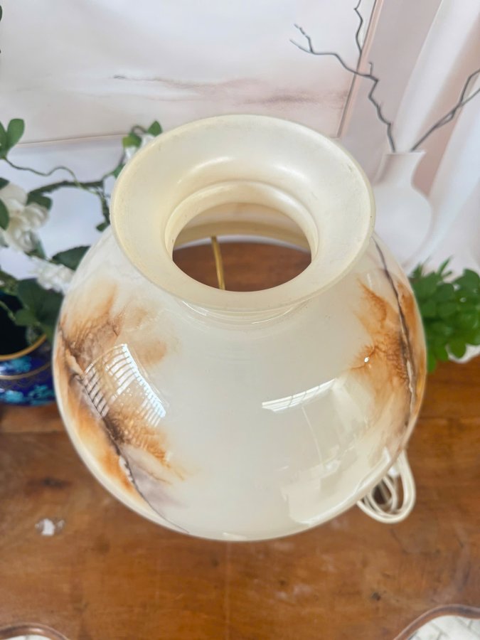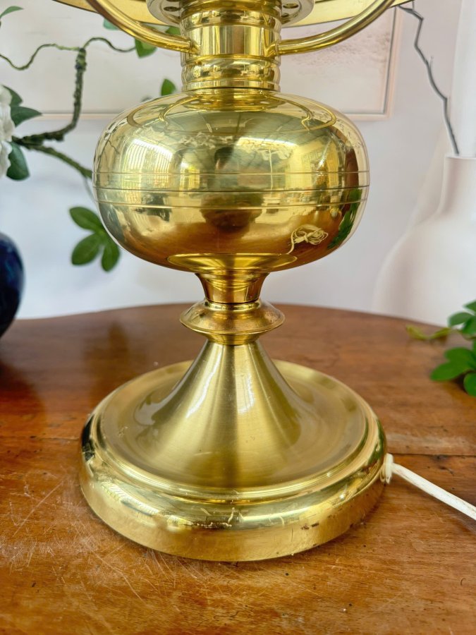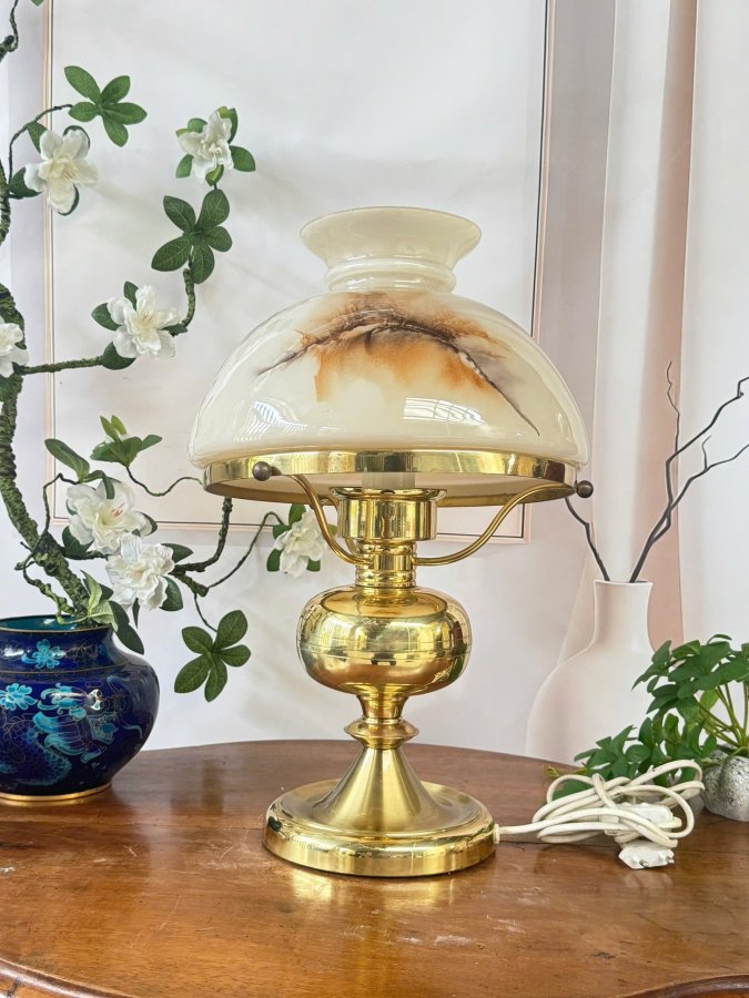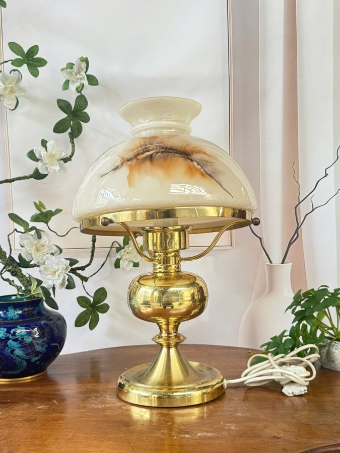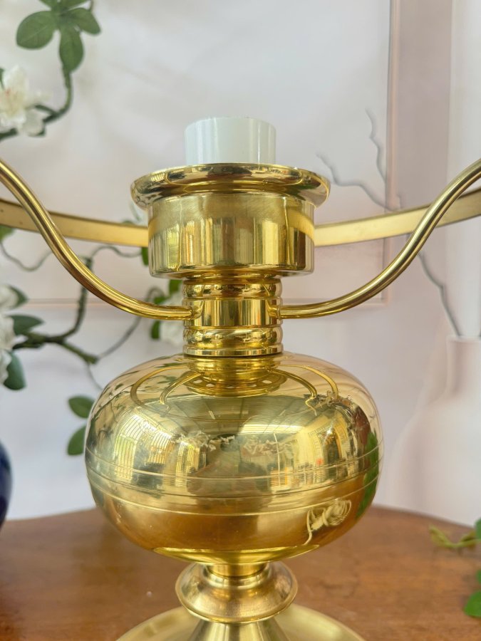 N28 cm, C45 cm 1 em đèn để bàn bằng đồng lắc kê vàng nước vàng còn rất đẹp phối với chao 2 da cực dày hoa văn sắc nét tất cả lành tít đẹp tuyệt vời Call:0333534345