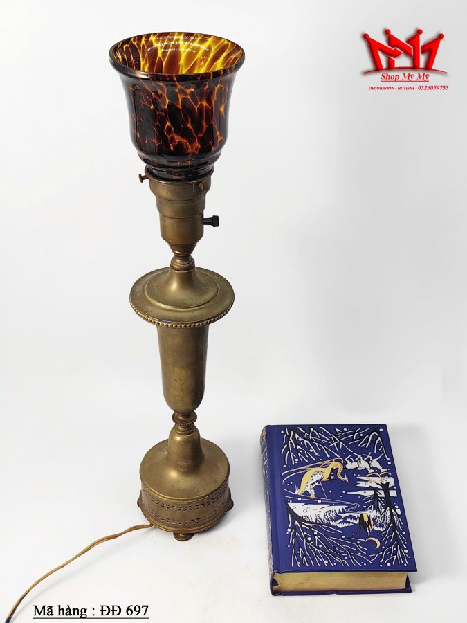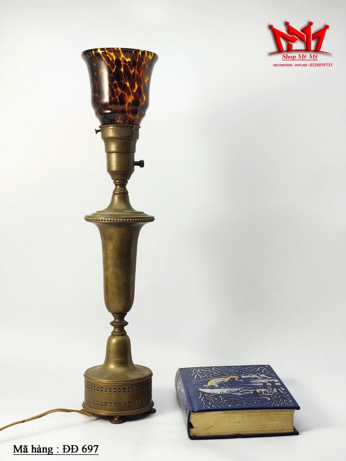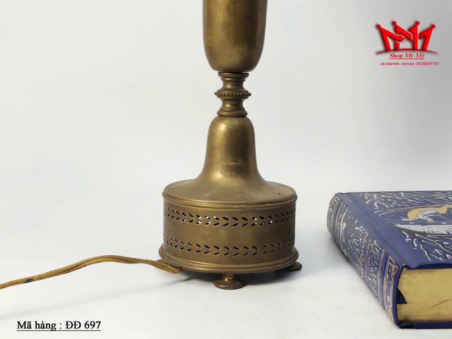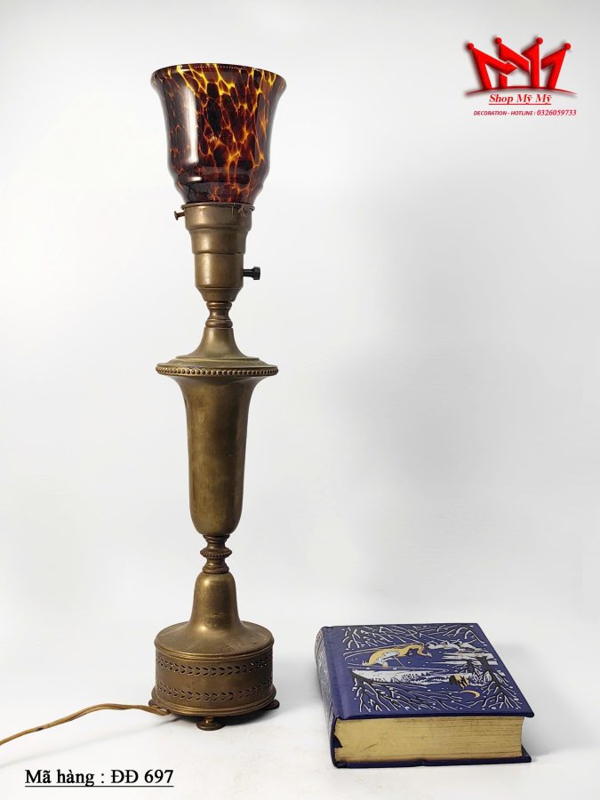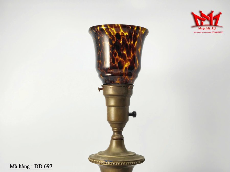 Đèn để bàn bằng đồng cổ điển có chao đèn hoạ tiết ************
