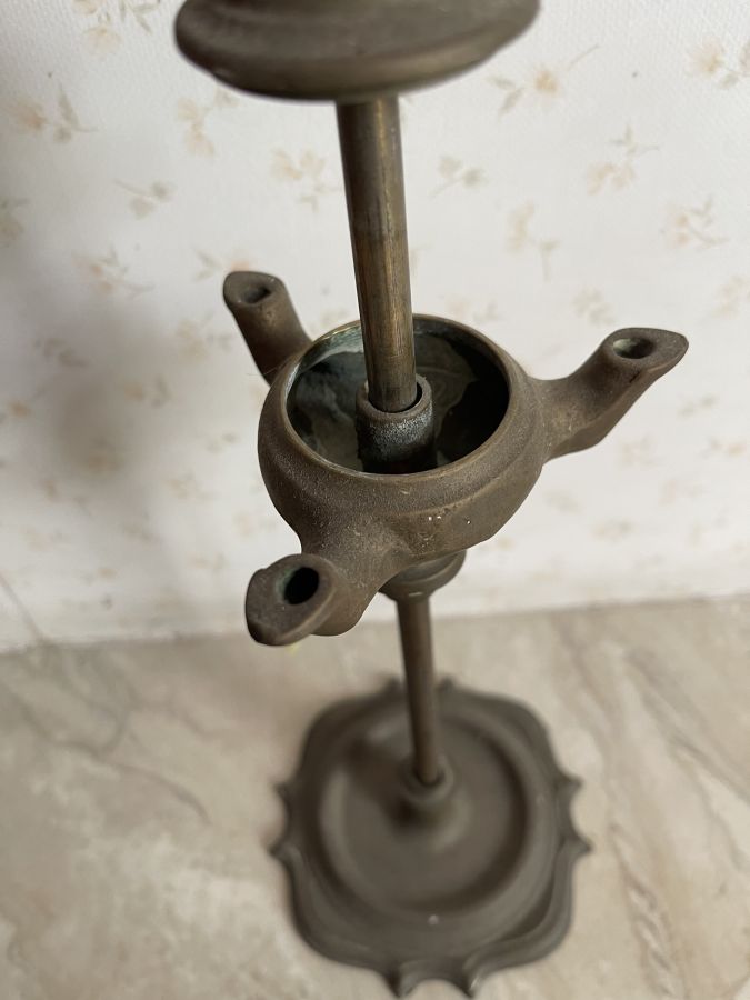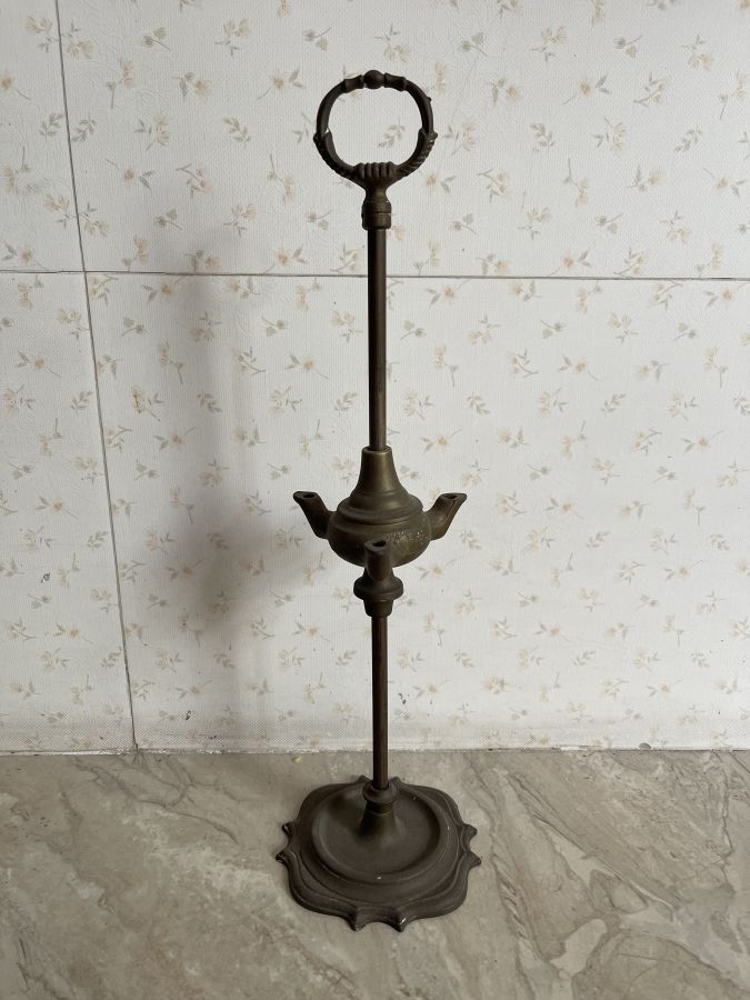 Đèn đồng pháp 3 ngọn cổ sâu tuổi cao 39cm, sử dụng ok