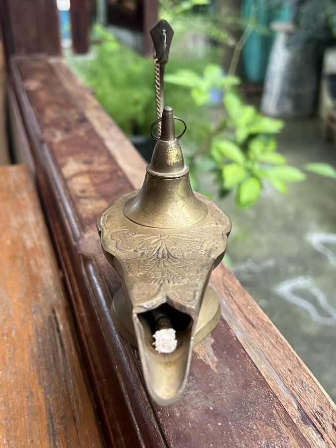 Aladdin và cây đèn thần 🙂 Chất đồng đúc, hoa văn mộc mạc Nắp nối với dây xích treo với quai đèn Ngang 19,5cm cao 12,5cm sâu 6,5cm Giá êm đầu năm 999k bao ship Phụng 0934751920 Zalo Lạc