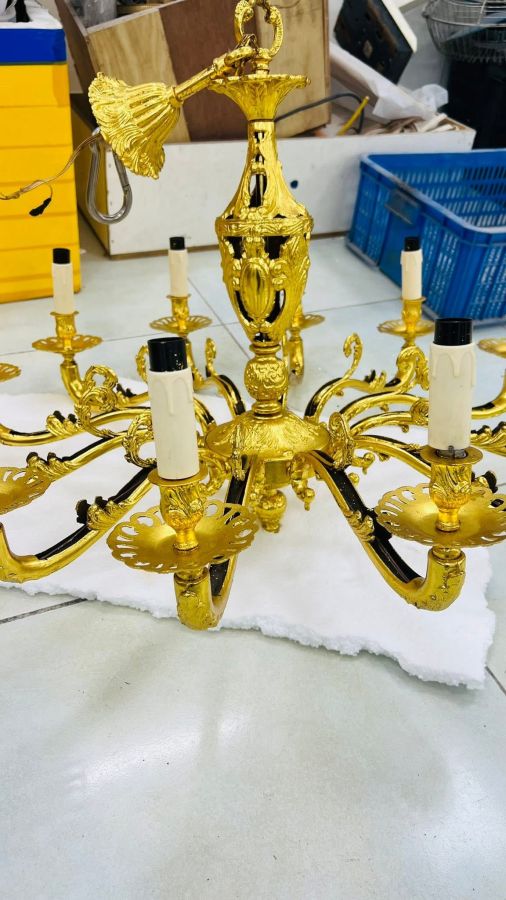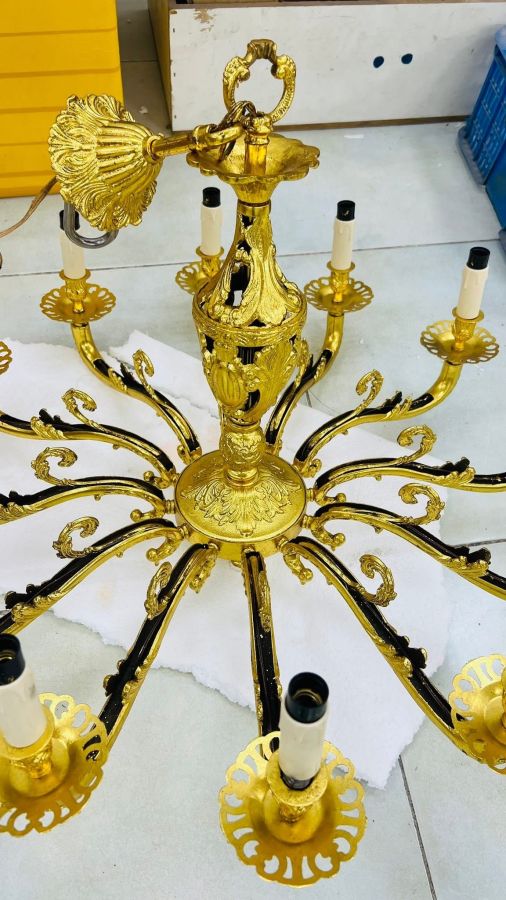 🪔 Đèn trần Pháp cổ 12 tay – hàng đồng đúc nguyên bản