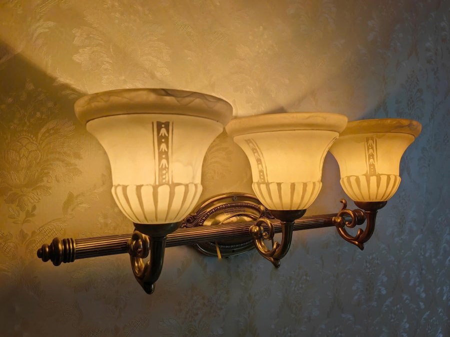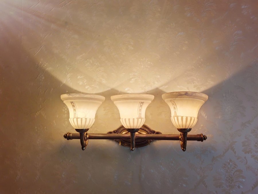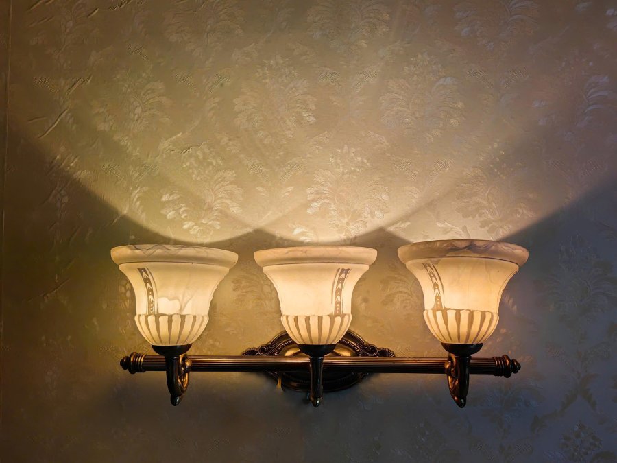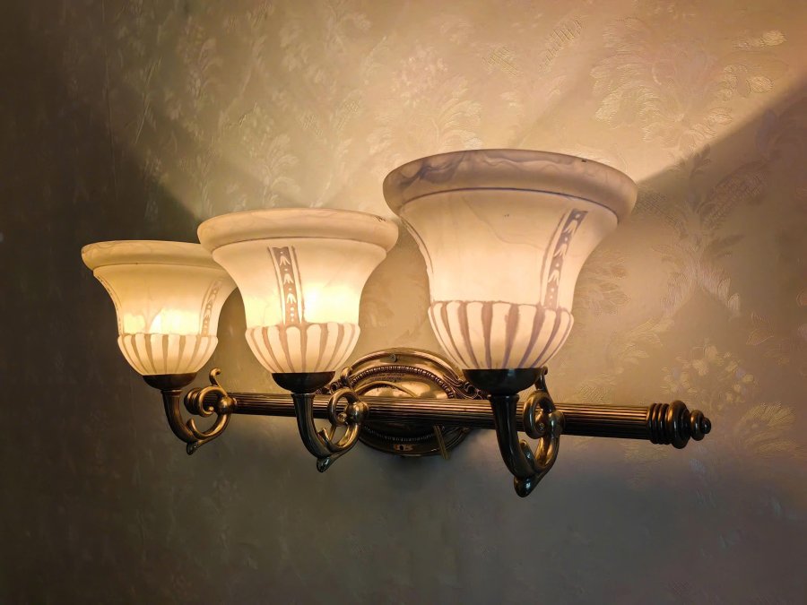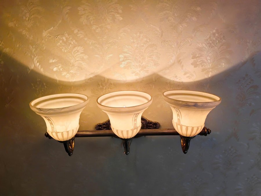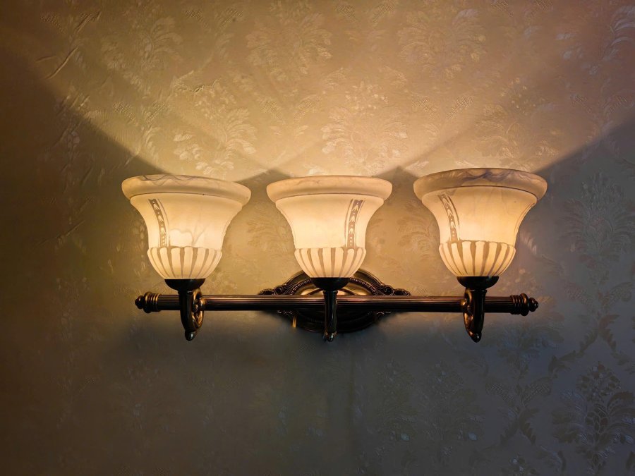 Đèn gắn tường 3 bóng cổ điển chao thủy tinh hoa văn
