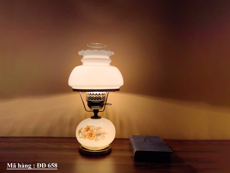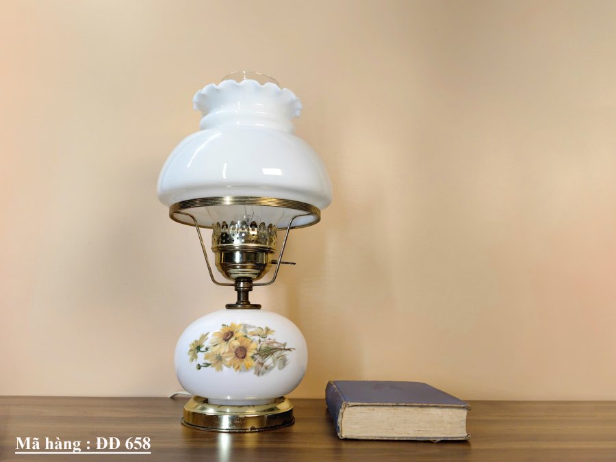 Đèn HURICAN cổ điển hình hoa, có 2 bóng trên và dưới·