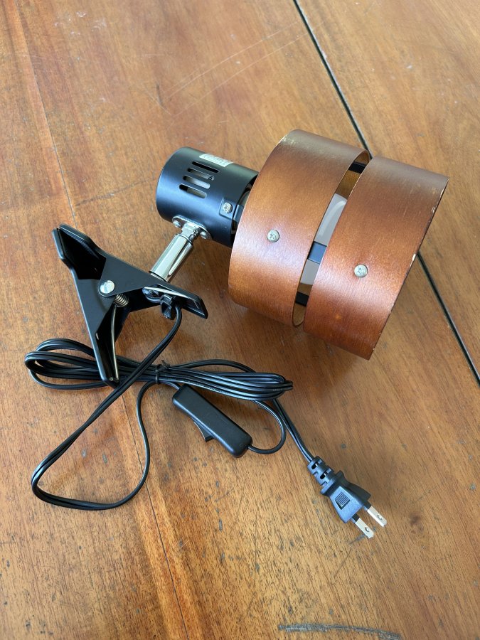 Bán 1 đèn kẹp bàn hàng xuất Nhật chưa sử dụng. Đèn có thiết kế choá gỗ kép lạ và đẹp, đèn xoay tròn linh hoạt, dây nguồn có công tắc phụ tiện lợi. Bóng zin theo đèn 100v, chuôi sứ thông dụng, dễ dàng thay bóng 220v theo nhu cầu