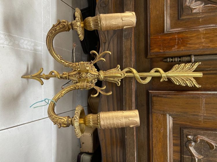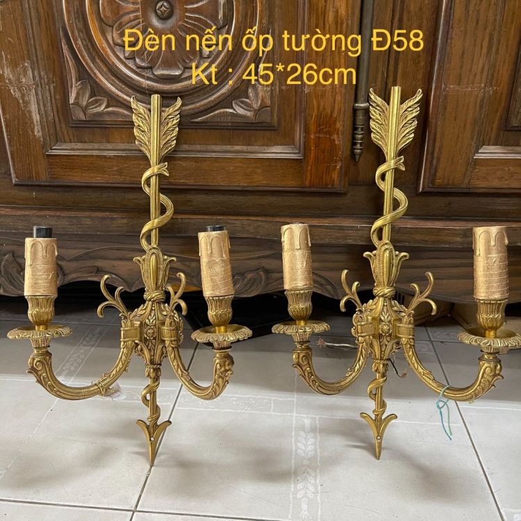 Đồng nguyên chất mạ vàng , 2 tay nến , hoạ tiết chế tác thủ công .