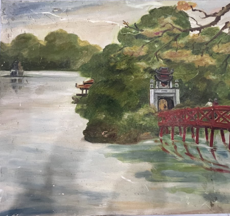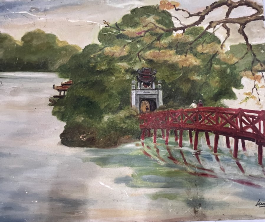 Đền Ngọc Sơn Hồ Gươm Tranh Sơn dầu Tác giả Hsĩ Kt 60cm x 80cm
