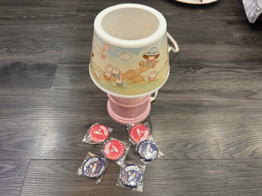 Đèn ngủ cho bé và 6 huy hiệu gắn túi, áo của Nhật. Đèn chất liệu nhựa, hoạ tiết dễ thương. Mới 100%. Đèn cao 19cm, ngang 12,5cm. Dùng được điện 220V. Em gl 150k
