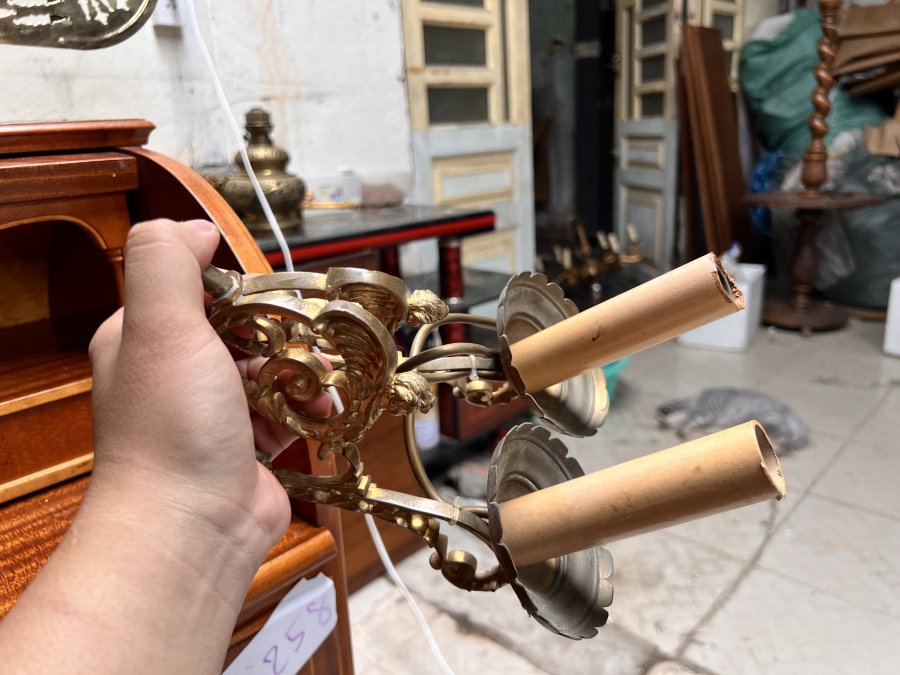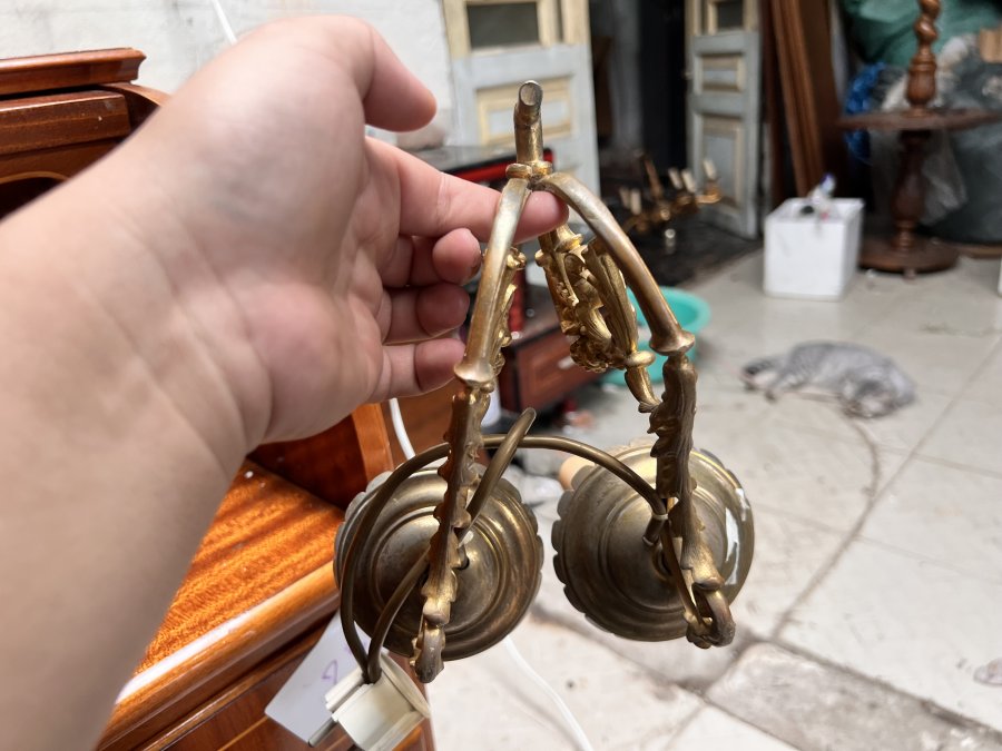 Cặp đèn ốp tường bằng đồng lacke vàng Pháp cổ có chữ kí.Hoa văn cuti thiên thần cực sắc nét,có thể xoay 360 độGiá:4tr4Call:0333534345