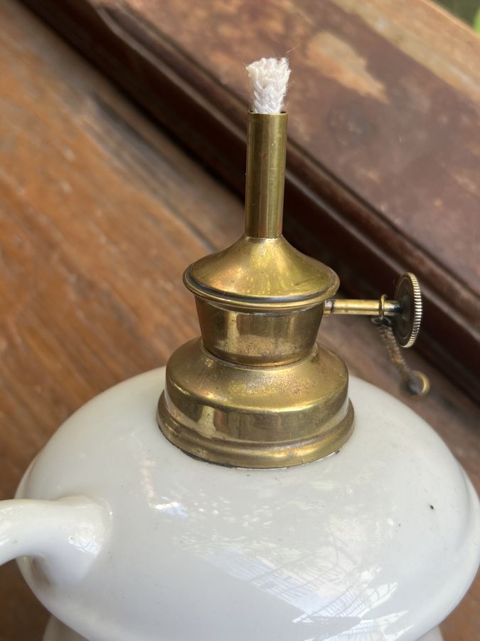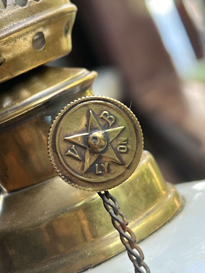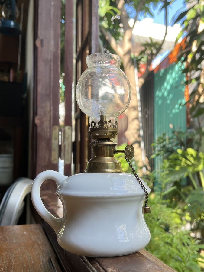 Em giao lưu đèn dầu Pháp Mộc chữ VB Lyon - Pháp. Bầu sứ trắng - họng đồng thau đẹp tuyệt vời. Sử dụng êm ai hoàn hảo mọi chức năng. Cao 21,5cm Bầu 11cm cả quai 14cm Giá êm ru con gà rù : 1250k bao ship Phụng 0934751920 - Zalo Lạc