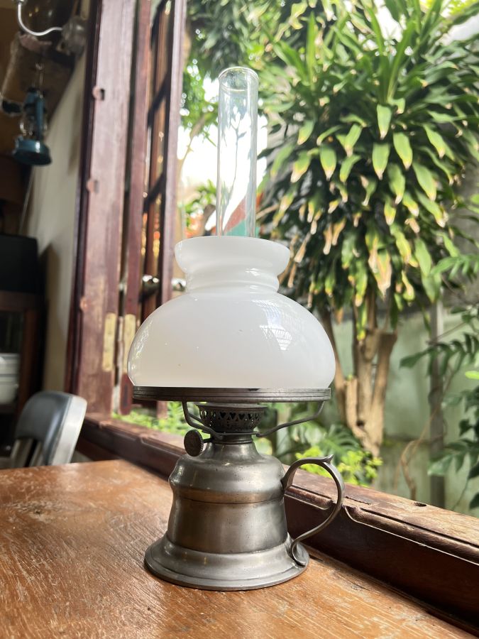 Em giao lưu đèn dầu Pháp bầu Thiếc đúc dày nặng, trong lòng là bầu Đồng thau.