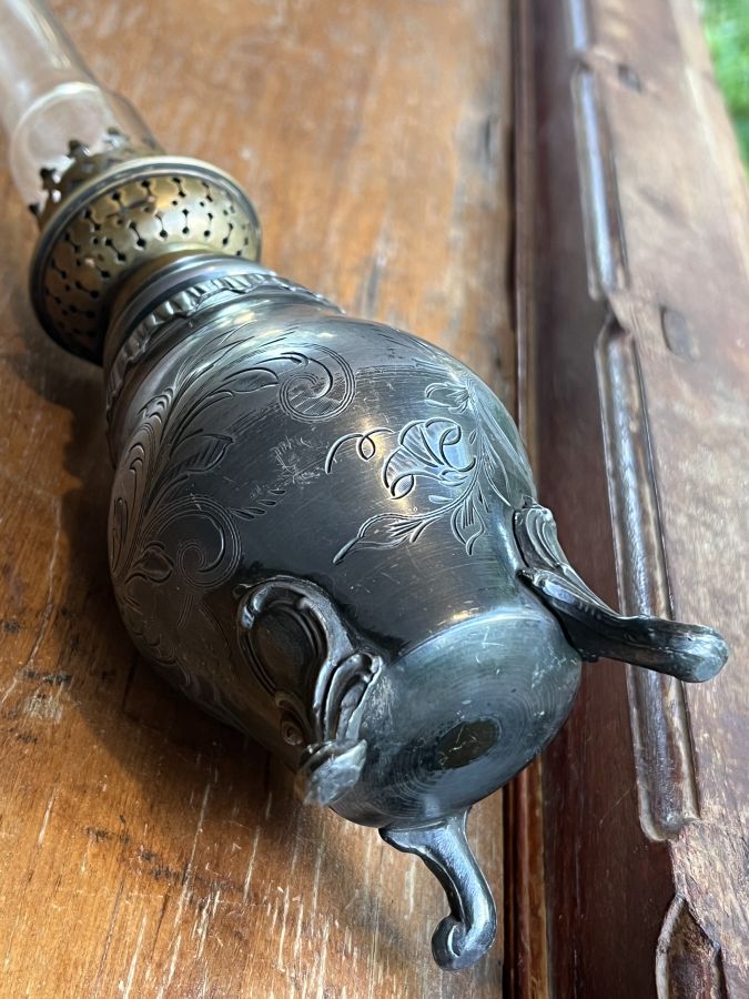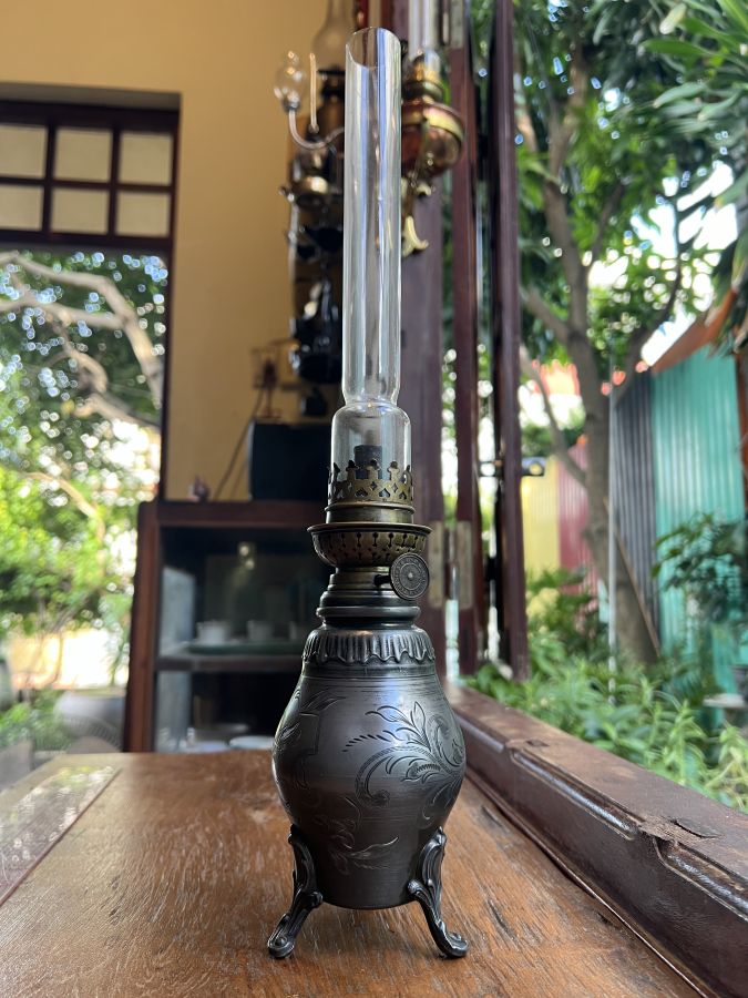 Em giao lưu đèn dầu Pháp bầu thiếc Đúc 3 chân độc lạ. Chất liệu thiếc đúc dày nặng, càng dùng lâu càng đen bóng. Hoa văn chủ đề Bướm Xuân 🥰 trang trí với hoạ tiết tao nhã và sang trọng.