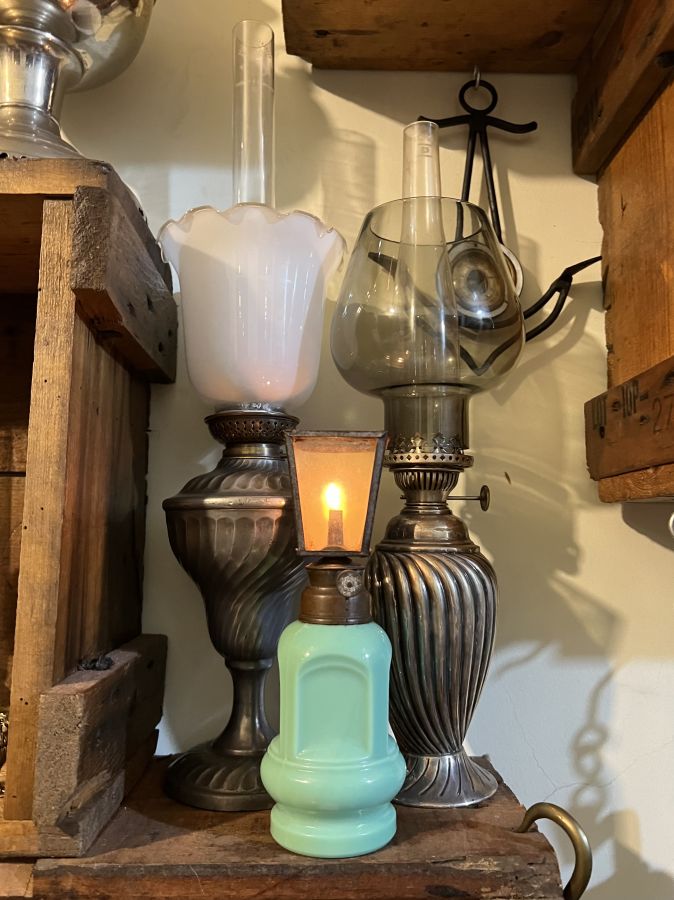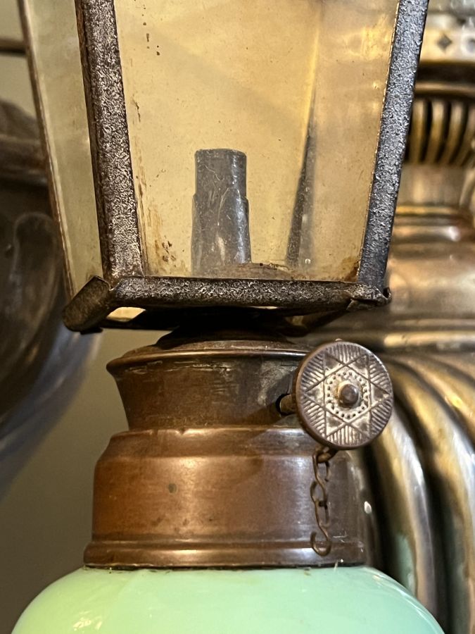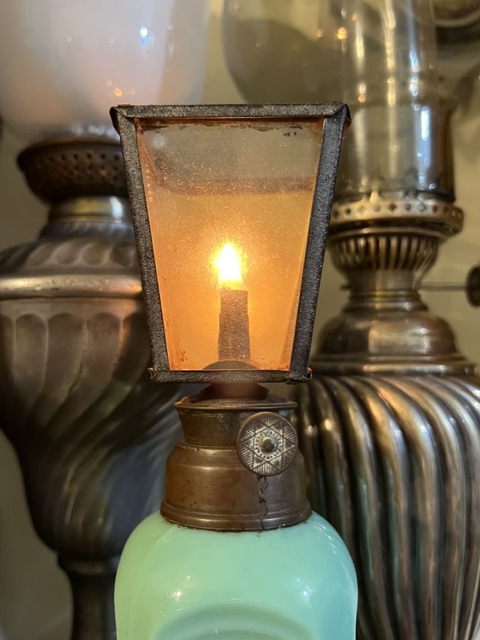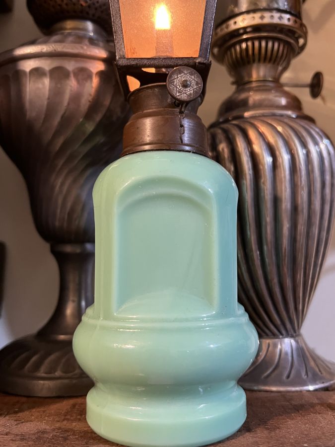 Em giao lưu đèn dầu Thuỷ tinh Opal của Pháp cổ.