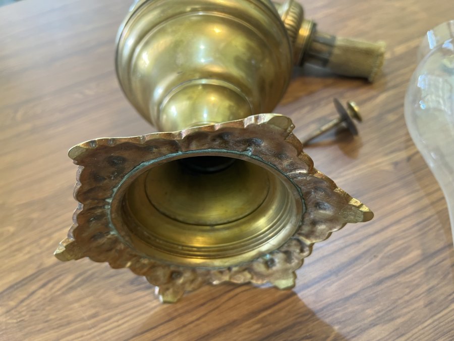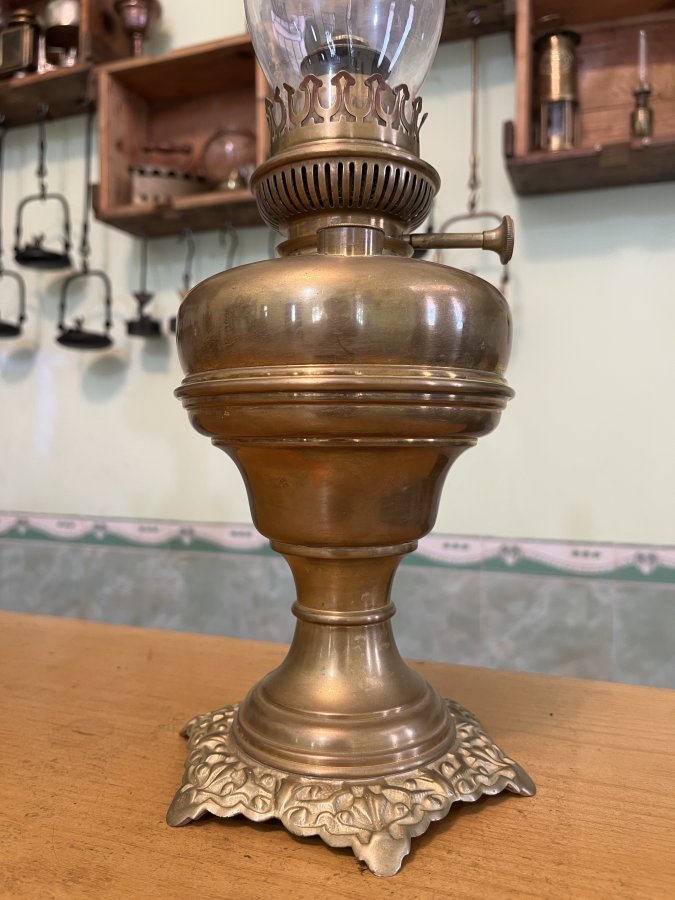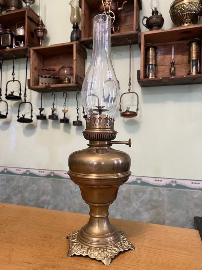 Chân đồng đúc hoa văn tinh tế, đèn dày nặng đẹp sử dụng êm ái cực kỳ đẹp mắt và rất đáng siu tầm.