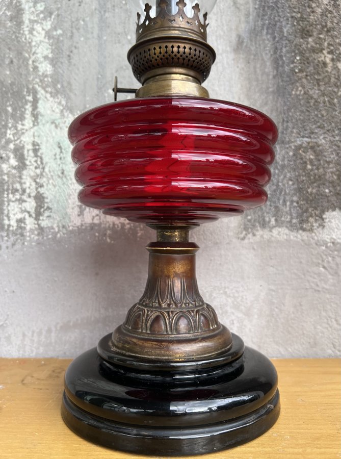 Em giao lưu đèn dầu Pháp cổ. Bầu Ruby đỏ cực đẹp.