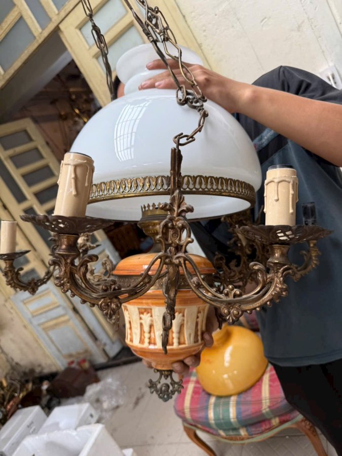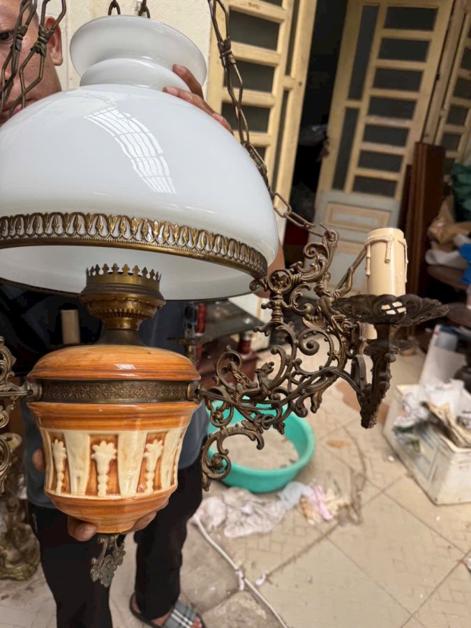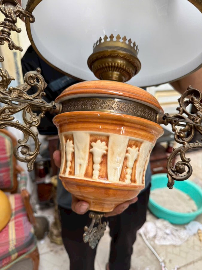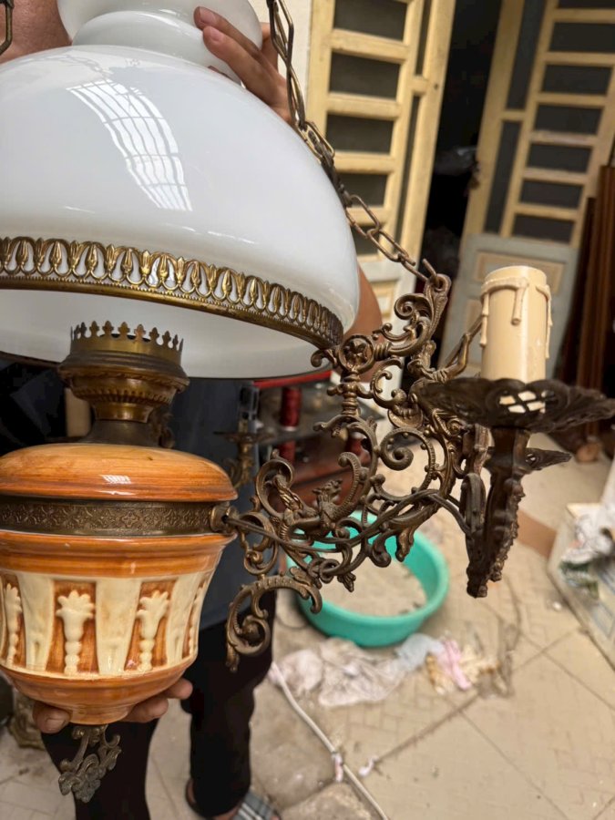 Lên anh cho anh em một chiếc đèn 3 giây hàng chuẩn cổ của Pháp cực sâu tuổi tay nến có tượng chiến binh phối với bầu sứ hoa văn nổi chao có bị sứt một miếng nên bán rẻ cho anh em,giá mềm Call:0333534345