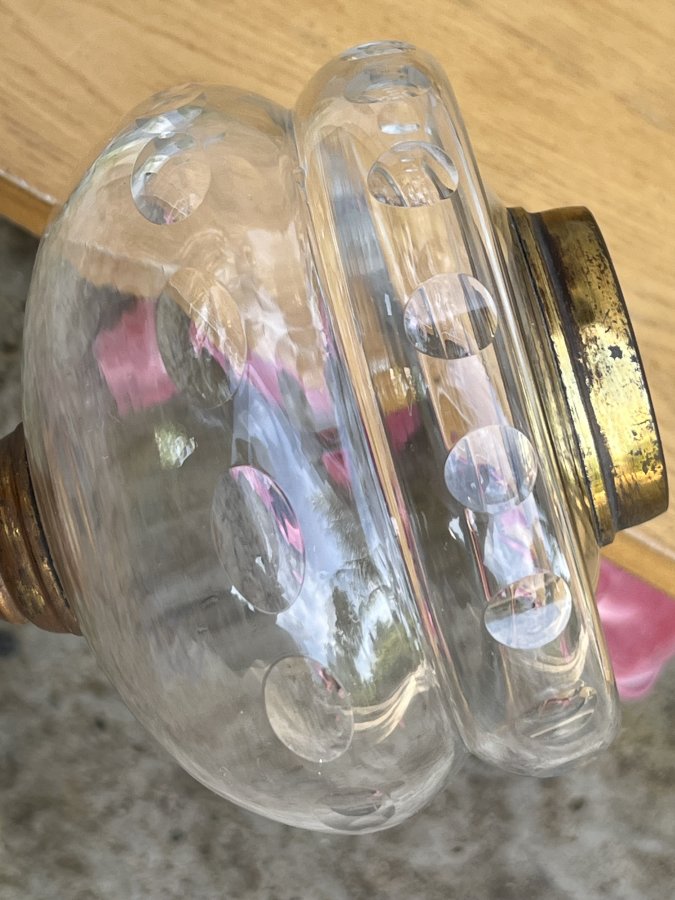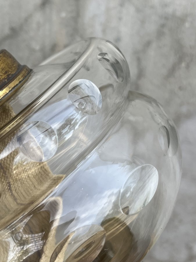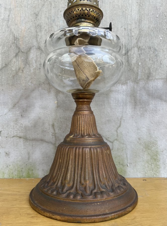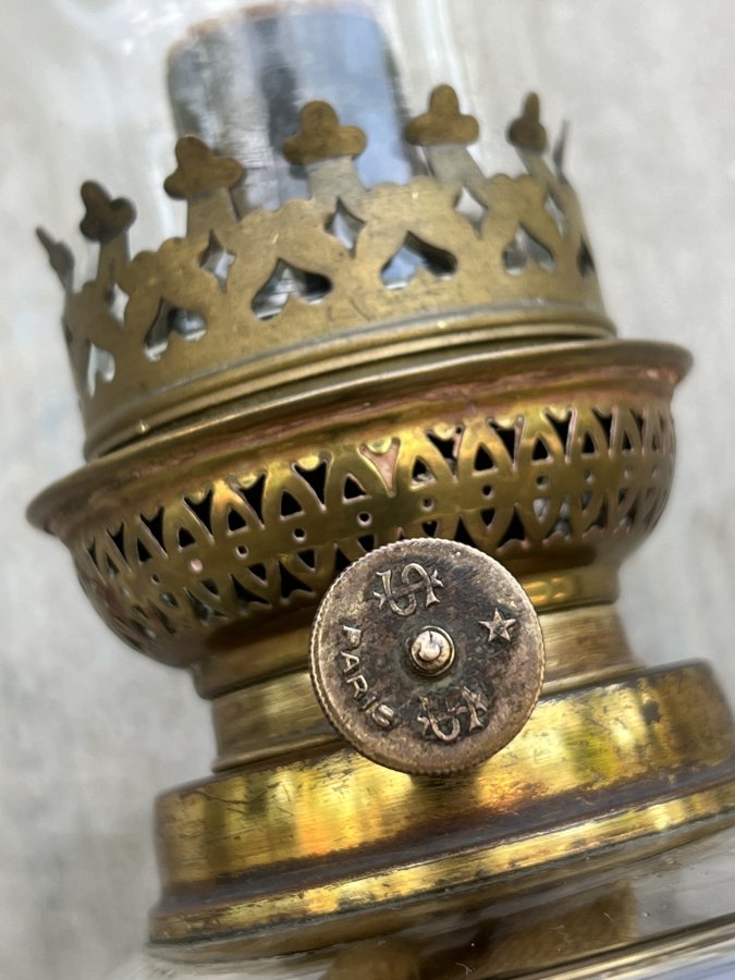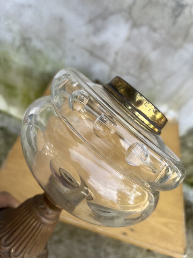 Em giao lưu đèn dầu Pháp cổ dánh cực gắt, bầu nở eo thon chân đế rộng vững vàng.