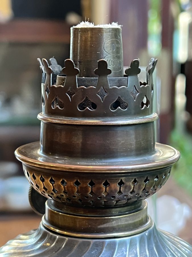 Em giao lưu đèn dầu Pháp cổ chất Thiếc đúc rất dày và nặng, cầm chắc tay cực.