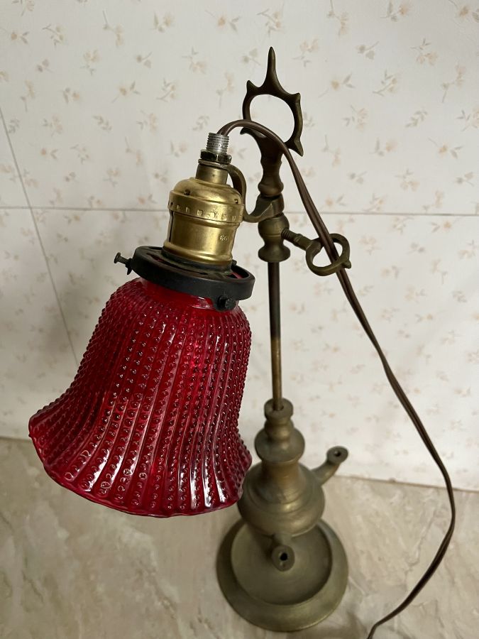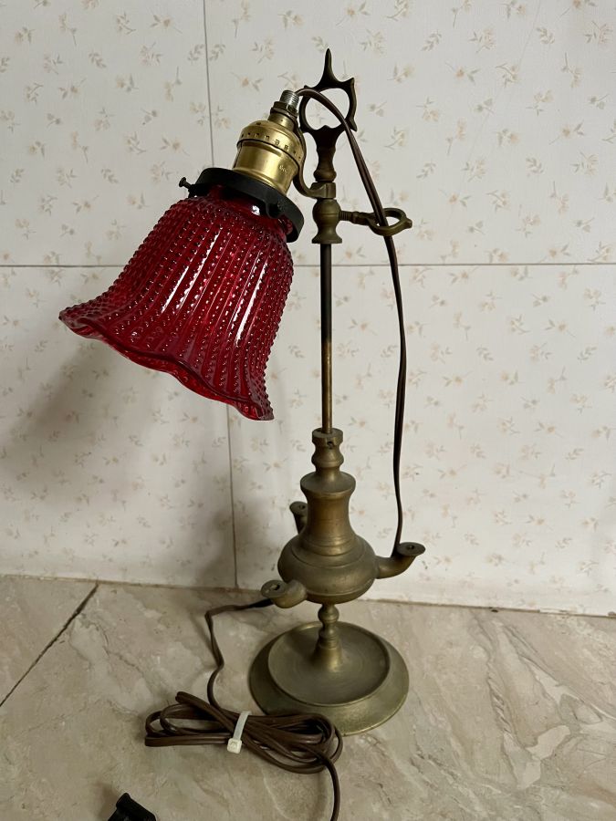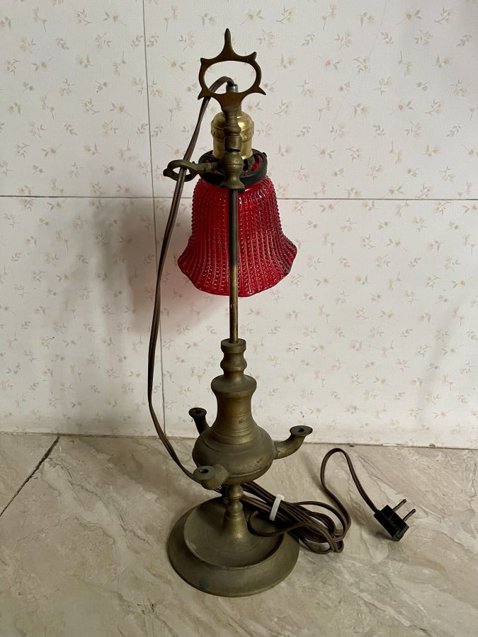 Đèn điện đồng xưa của pháp , rất đẹp và hiếm , chuôi và 3 càng gắn lamp bằng đồng , bóng đuôi xoay thay dễ dàng Tăng đơ lamp lên xuống đc Cao 43cm
