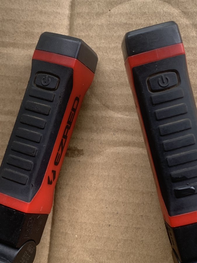 Đèn còn rất mới, mỗi đèn sử dụng 1 pin AA sáng độc lập, bóng led có độ sáng tới 200 luxmen kéo dài 5 giờ liên tục. Đèn có xoay 90° tuỳ chỉnh. Một bên đèn lò xo cực âm đã thay thế. Cám ơn đã xem tin.