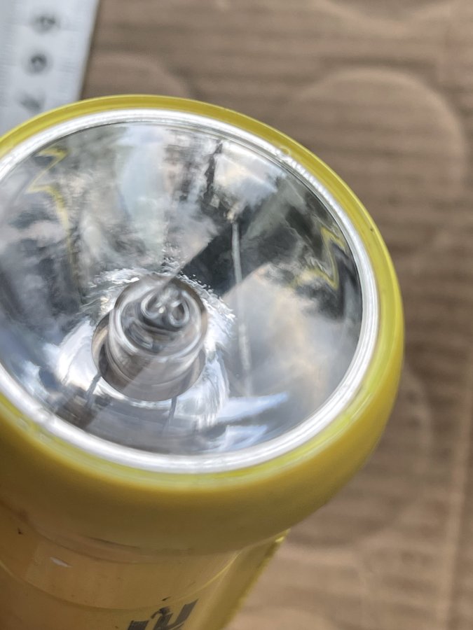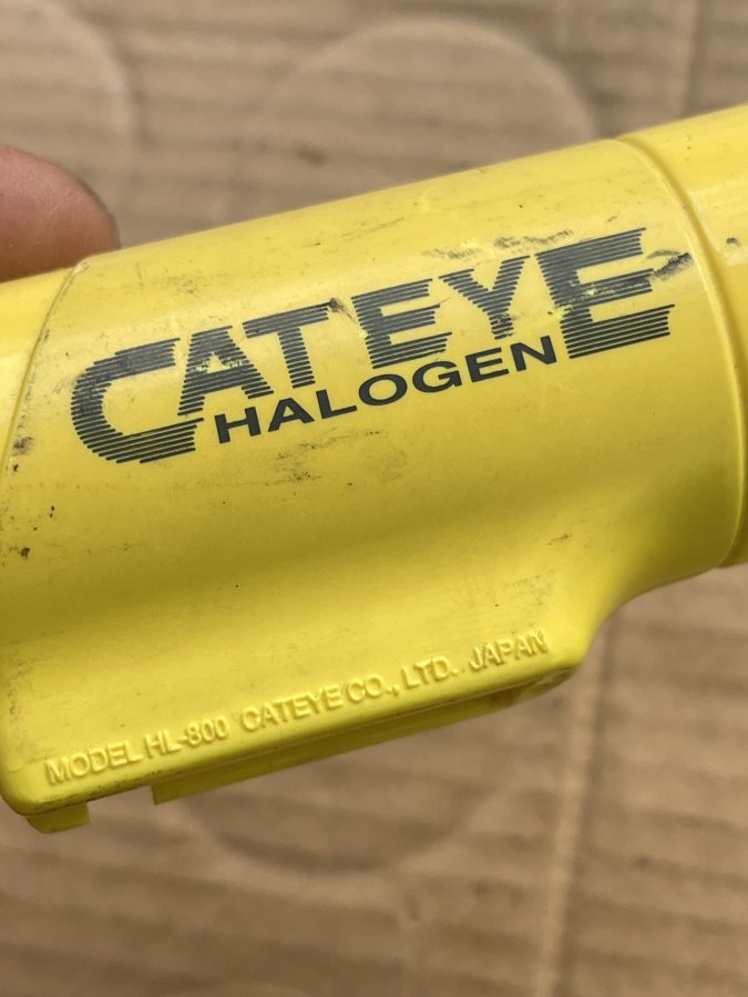 Sản phẩm là một đèn pin với bóng Halogen dùng để gắn vào xe đạp. Nó vẫn còn lành nguyên, bóng đo thử vẫn tốt. Cao su bọc nút bấm phía sau bị rách. Cám ơn đã xem tin.