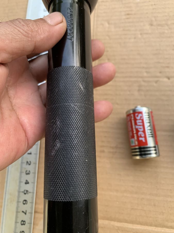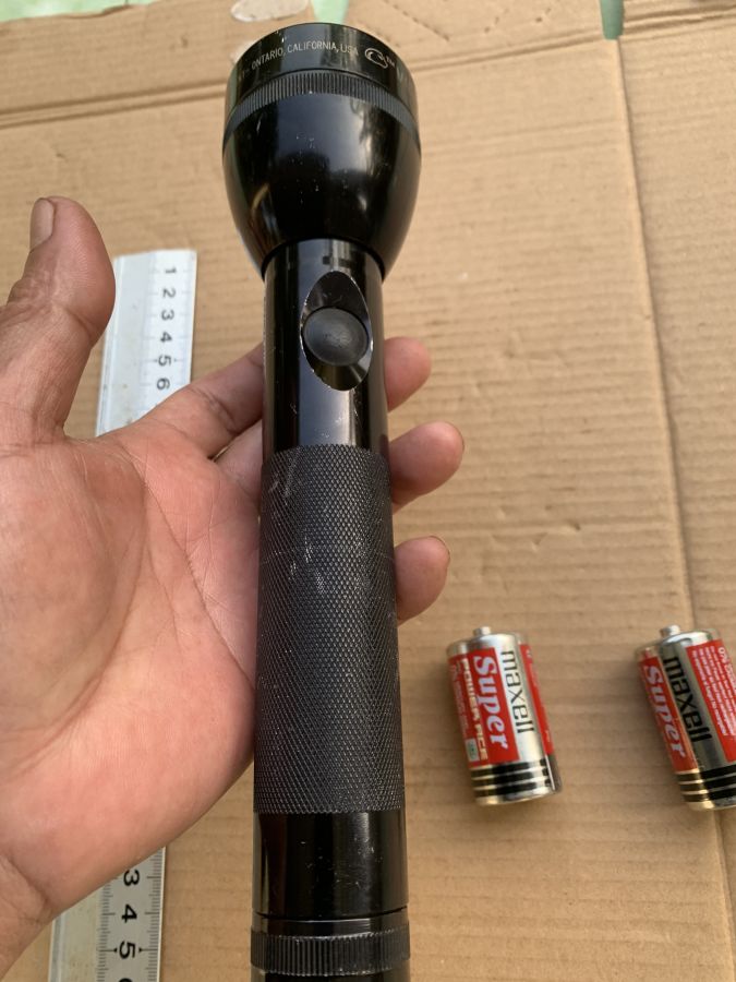 Đèn pin thân nhôm cổ điển của Mỹ, đèn có vài vết trầy xước như hình chụp nhưng tổng thể vẫn lành nguyên rất đẹp, đèn sử dụng 2 pin trung, có thêm 1 bóng dự phòng. Đèn có khả năng chống nước tốt. Đèn vẫn hoạt động tốt, anh chị mua sử dụng hay sưu tầm. Cám ơn đã xem tin.
