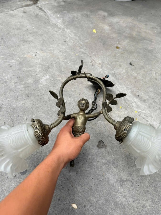 Đèn thả trần cu Tí bằng đồng của Pháp rất đẹp tất cả bằng đồng lạnh thích phối với lam trắng tuyệt đẹp không điểm chê giá mềmCall:0333534345