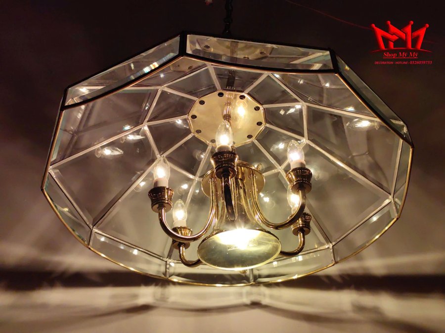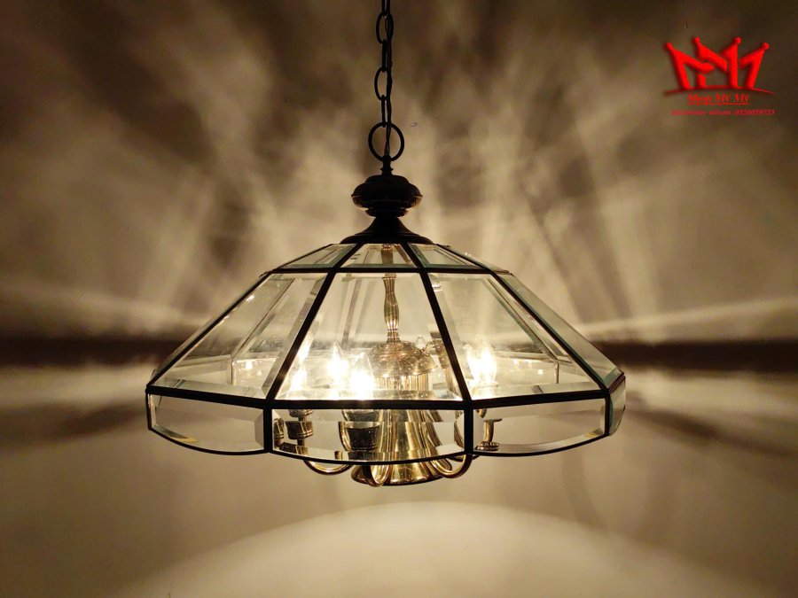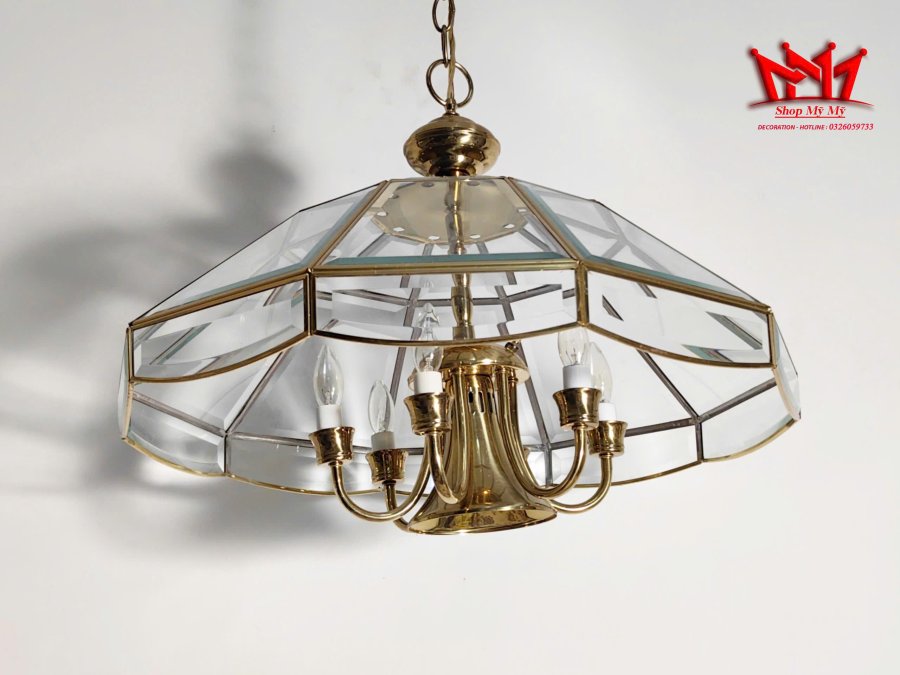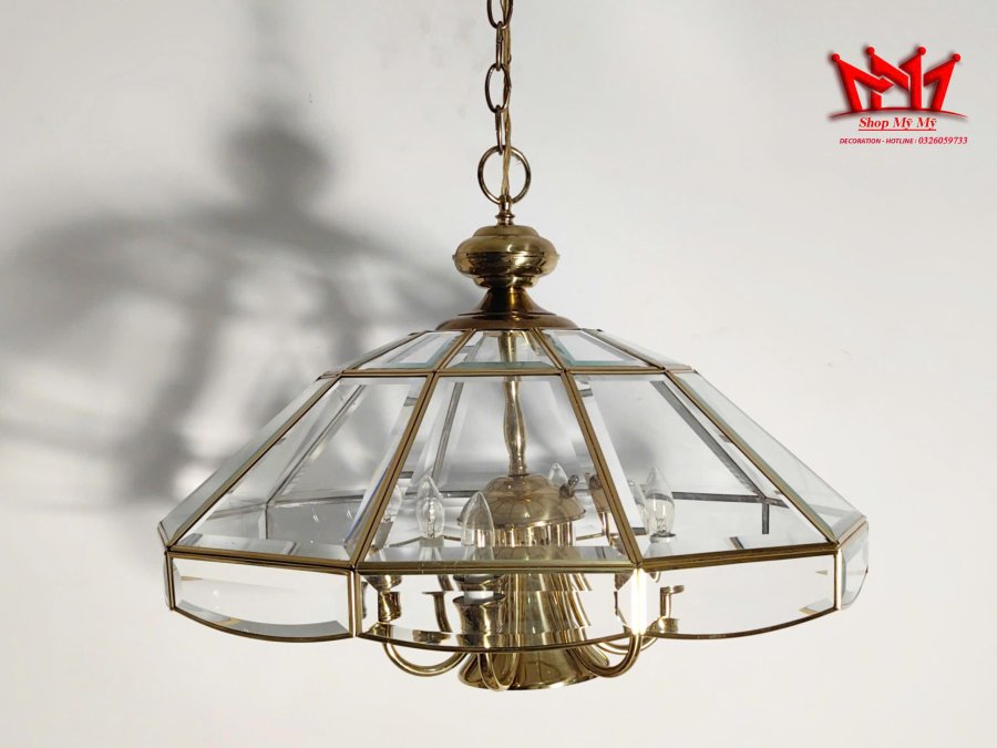 Đèn thả trần bằng thủy tinh và đồng , đường kính 55cm