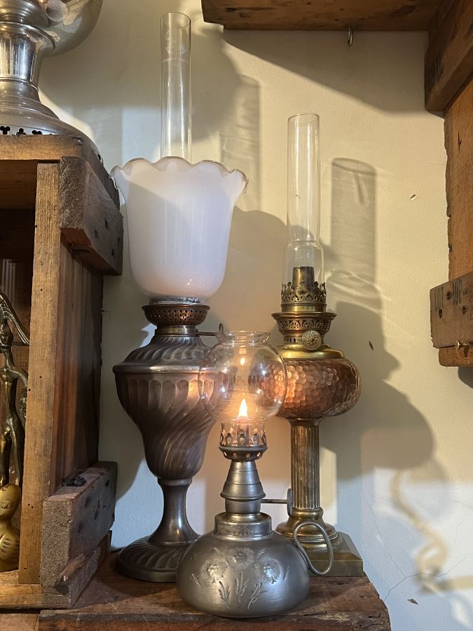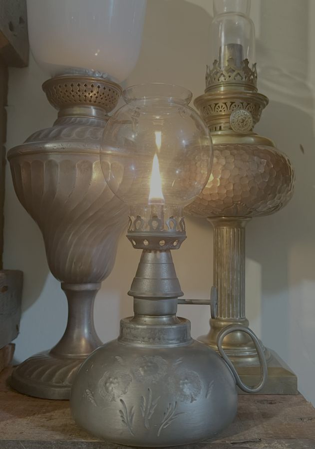 Em giao lưu đèn dầu Pháp bằng Thiếc gò rất đẹp