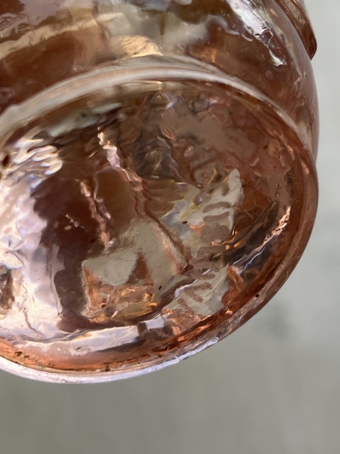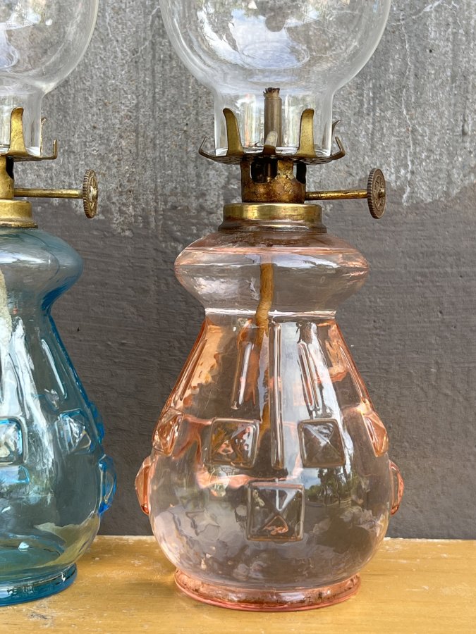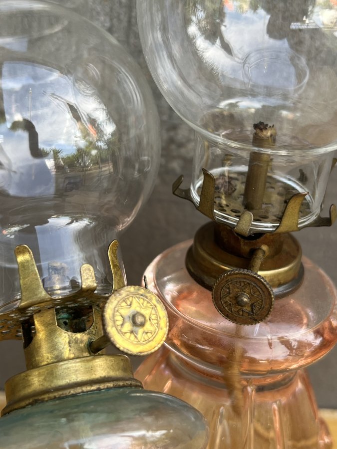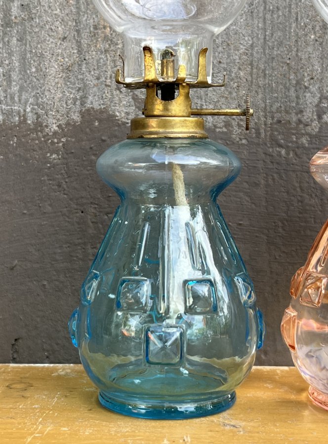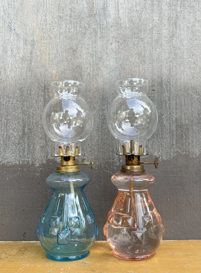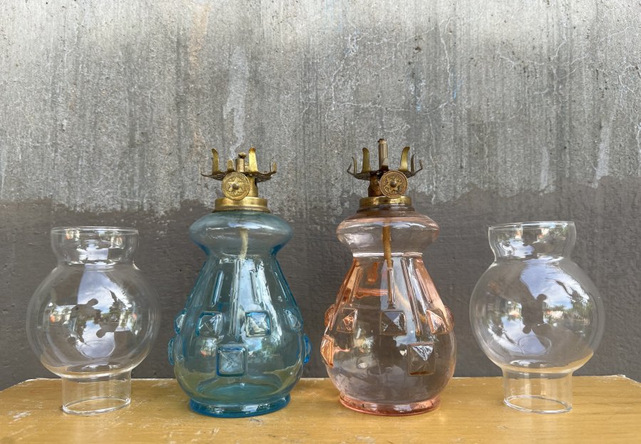 Hoa văn nổi đồng bộ trên cả 2 bầu đèn, họng đèn. Mộc chữ dưới đáy đèn.
