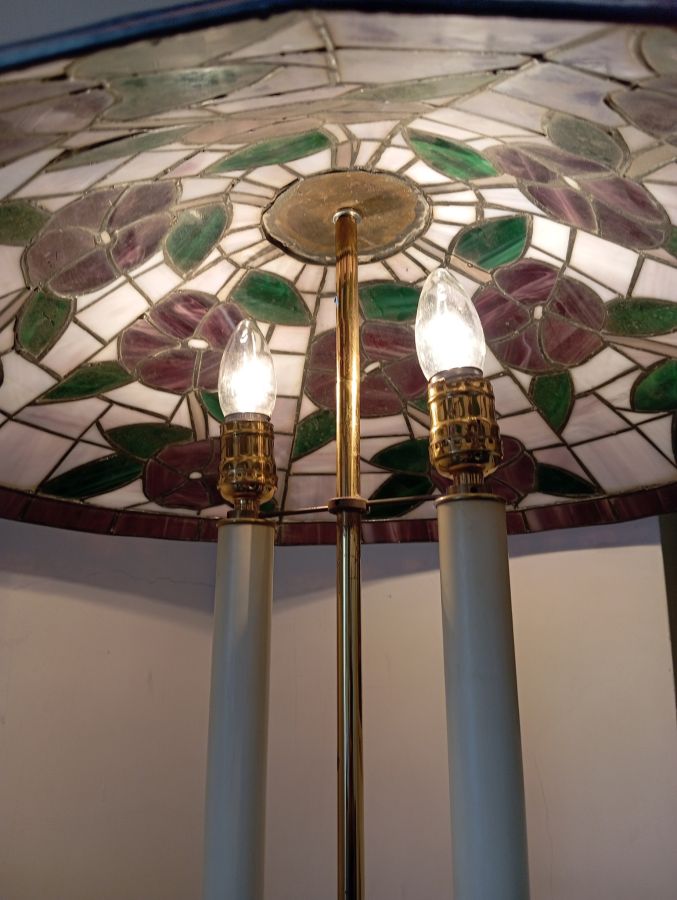 Đèn tiffany 2 bóng được làm bằng đồng.