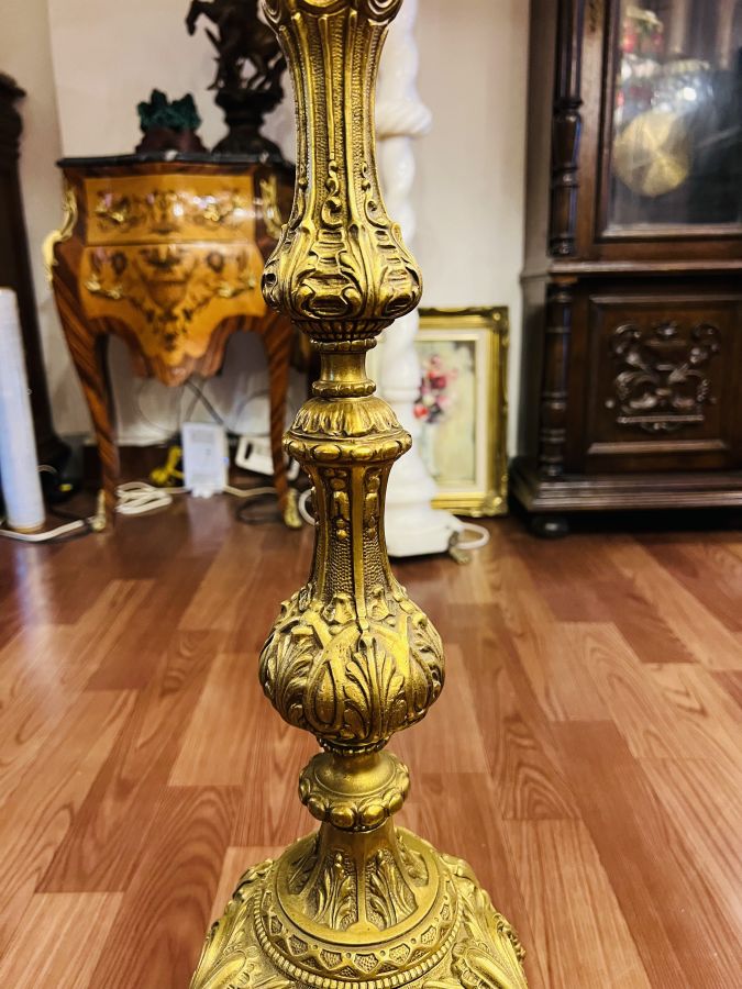 Một cây đèn đẹp rực rỡ rất đáng để chơiCao 168cm, đường kính chao 50cmThân đồng đúc hoa văn điệu đà